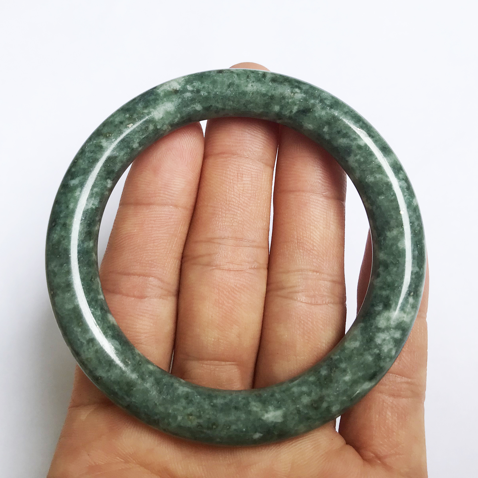 1. Chất liệu: Ngọc Serpentine 100% tự nhiên được khai thác và chế tác tại tỉnh Ybai 2. Kích thước: Size từ 5.0cm đến 7.0cm. Đo tay theo hướng dẫn bên dưới để biết nên