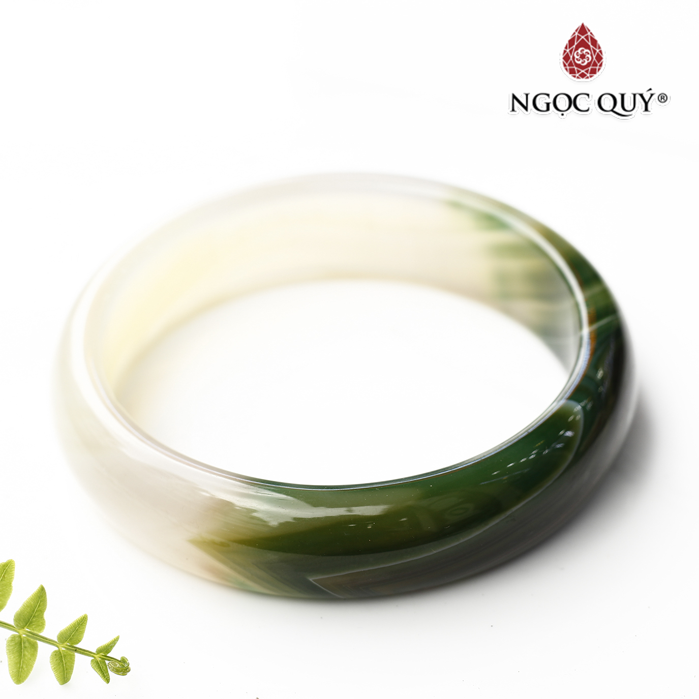 Vòng nguyên khối bản cọng tròn đá mã não xanh - Hợp Mệnh Mộc & Hỏa [ Ngọc Quý ]