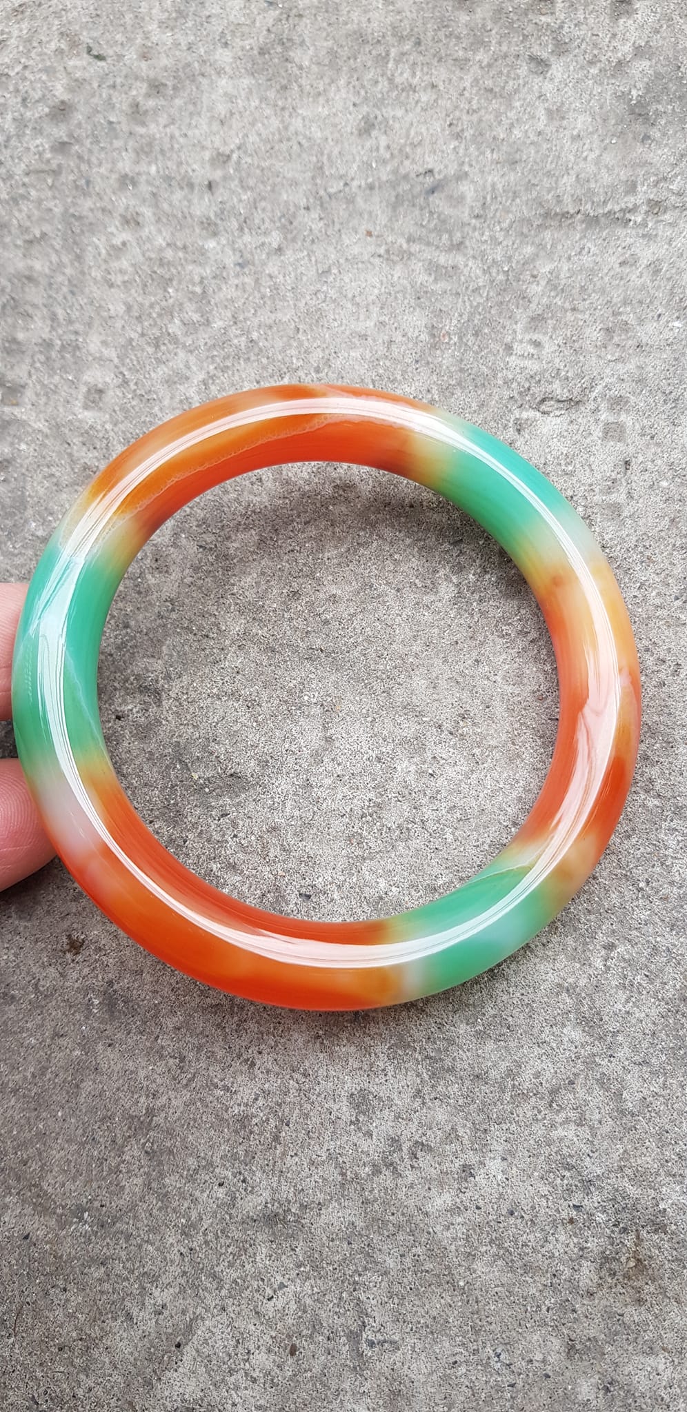 Vòng tay Nữ đá mã não đỏ cam trắng Ni 56mm x chột to 9mm trắng đỏ cam nhẹ 1 bên vân Nữ 55kg-63kg đeo