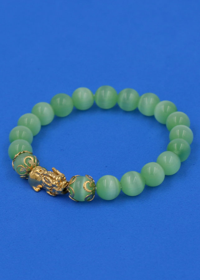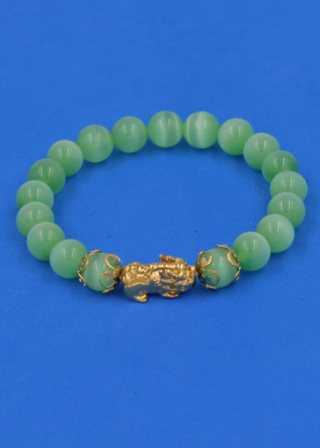Màu xanh lá luôn đem lại cho ta cảm giác thoải mái tự nhiên nó là tượng trưng của hoà thuận, phát triển cùng với sự tươi mát, màu mỡ. Màu sắc này cũng còn tượng trưng cho sự thông thái.Là màu sắc mang lại cảm giác an toàn và yên ổn. Các bạn có thể thấy các đèn tín hiệu trong giao thông sử dụng màu xanh để báo hiệu an toàn cho các phương tiện di chuyển. Màu xanh của đá mắt mèo này còn mang đến sự nhẹ nhàng với đôi mắt nó mang ý nghĩa của sự hy vọng và phát triển.Đá Mắt Mèo phong thuỷ màu xanh lá rất hợp với người mệnh Hoả nó sẽ mang đến bạn cảm giác tràn đầy sức sống, tươi mát giúp bạn thoải mái trong công việc kinh doanh và học tập.