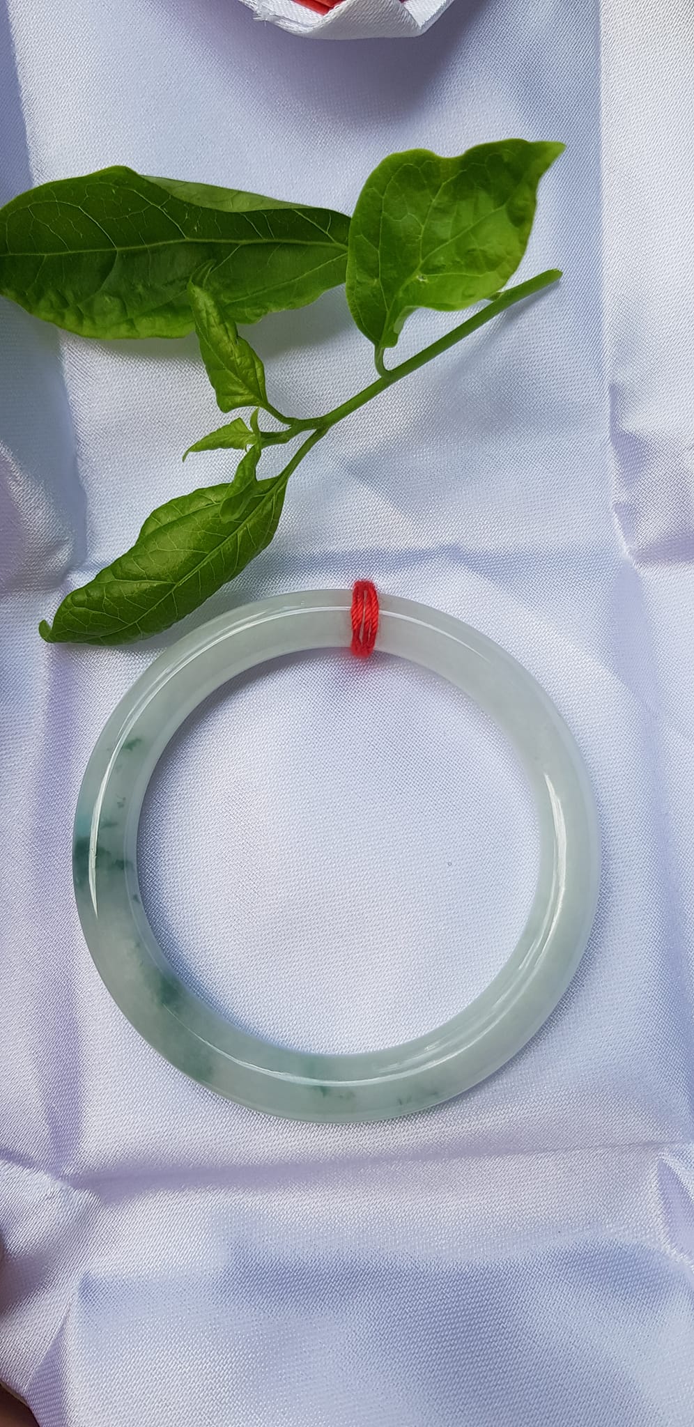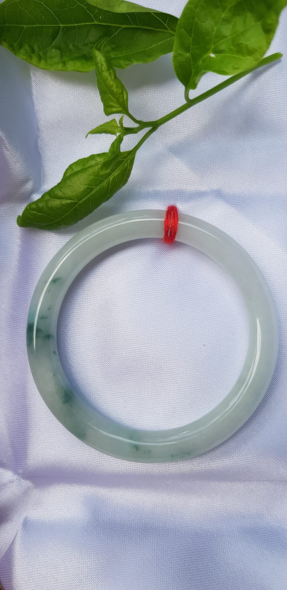 ✨Vòng Tay Đá Ngọc Cẩm Thạch tự nhiên TR LÝ 49mm x cọng 7,2mm Màu bạch ngọc trắng bóng điểm lý xanh rêu rất là đẹp sang Nữ mệnh Kim, mệnh Thủy năngh 47kg - 51kg đeo đẹp ạ