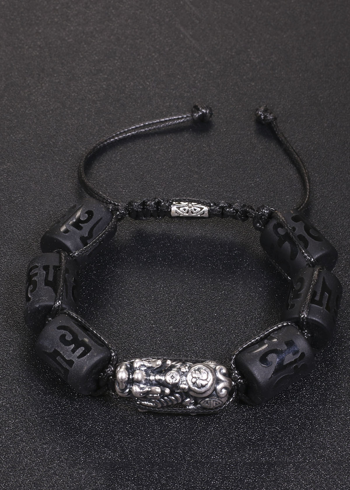 ✨Vòng tay đá obsidian đốt trụ lục tự đại minh chú mix tỳ hưu bạc 16x12mm mệnh thủy, mộc - Ngọc Quý Gemstones