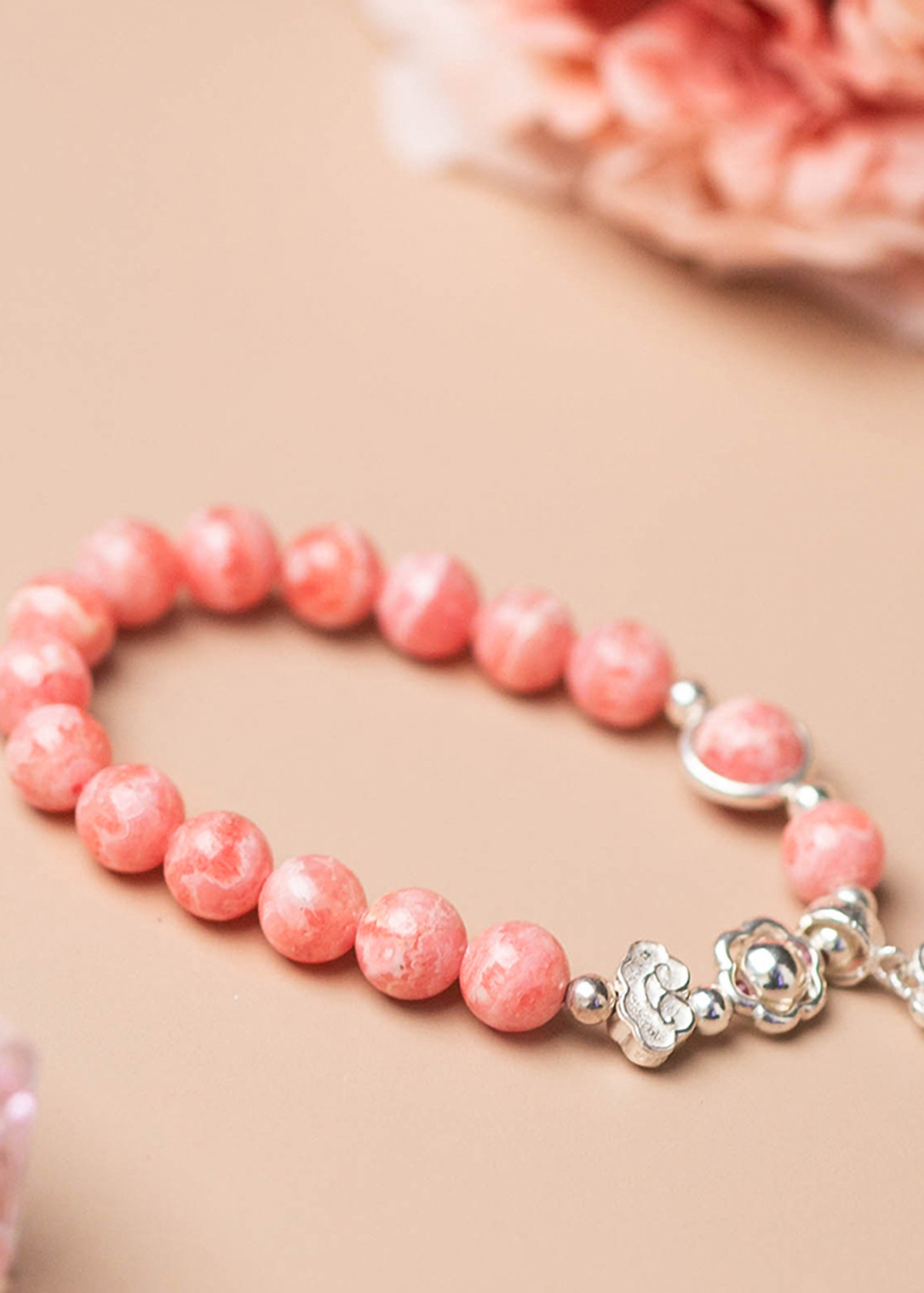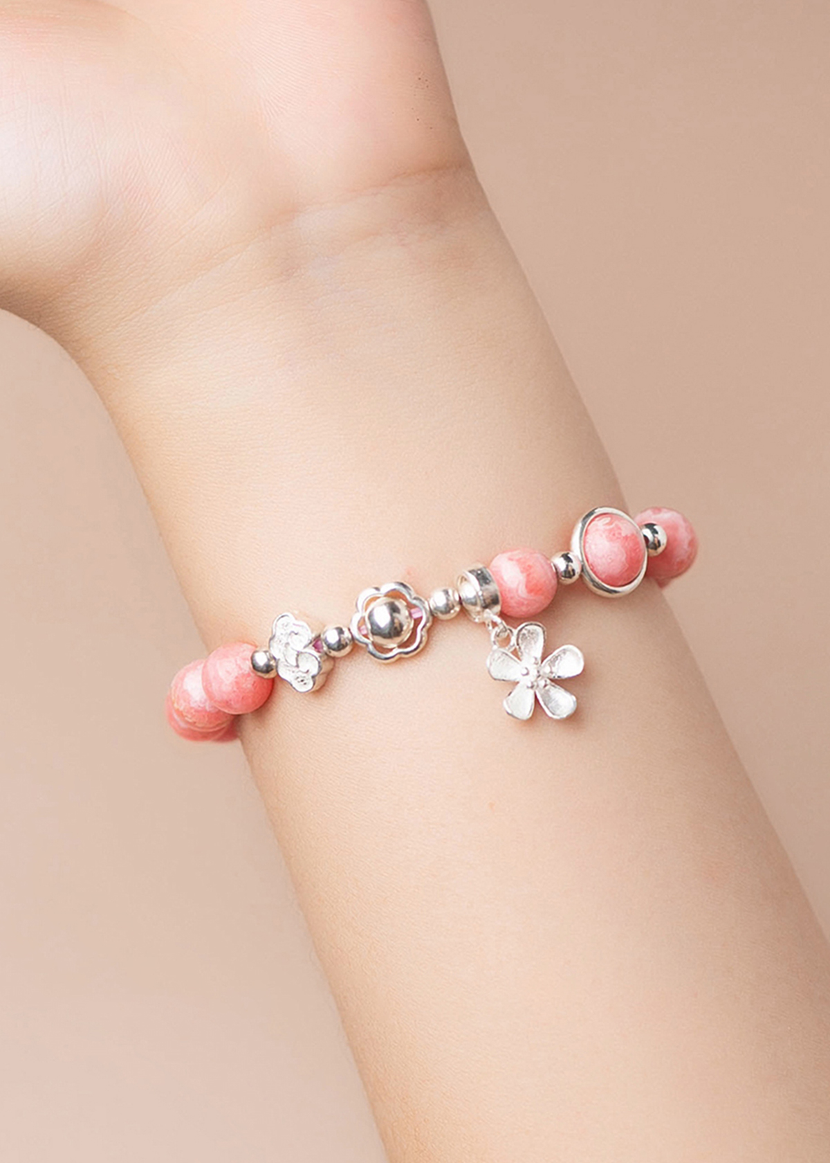 Vòng Tay Đá Rhodochrosite Phối Charm Hoa :