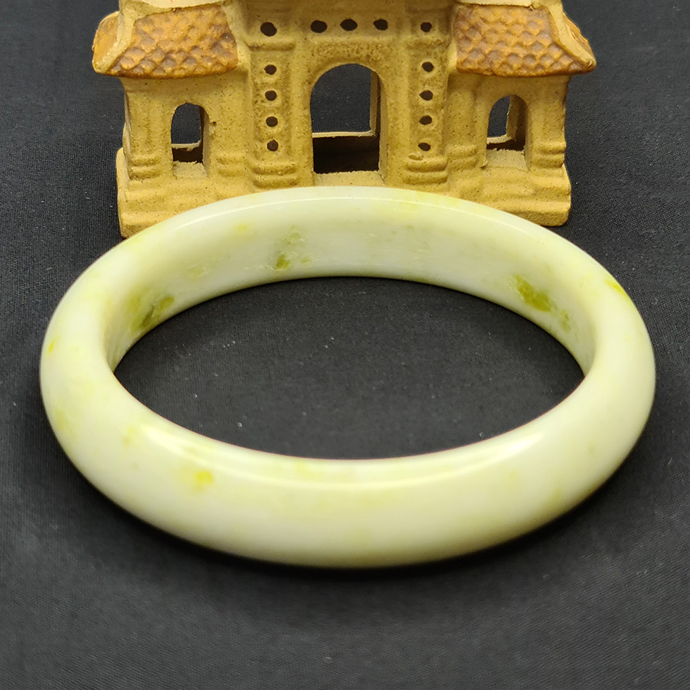Vòng tay Nữ Đá Cẩm Thạch mới TR Lý 57 mm x cọng 7,5mm Màu Xanh lý tươi trắng 2 bên đều vòng đẹp Nữ 55kg - 64kg đeo đẹp món quà tặng chính mình