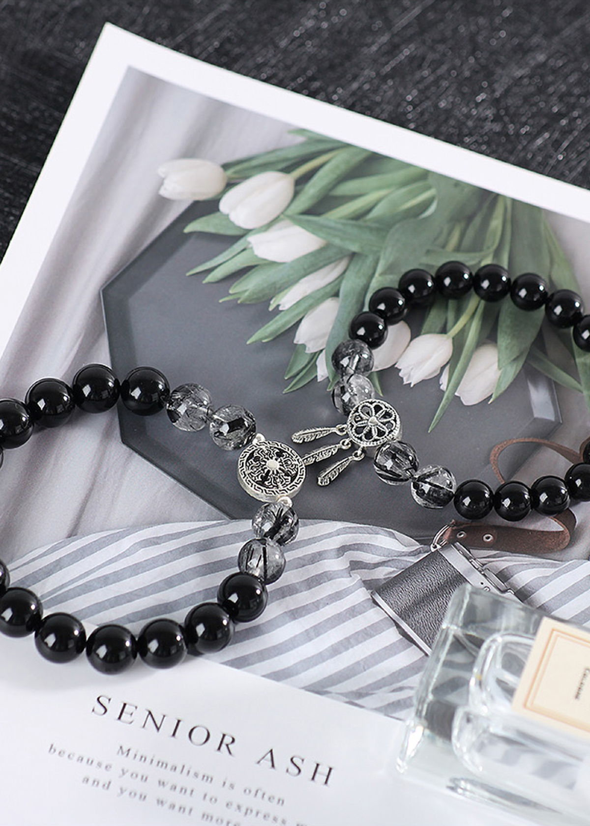 Vòng cặp nam nữ đá thiên nhiên phối charm bạc - Chất liệu vòng gia công từ đá thiên nhiên, không qua xử lý mang lại lợi ích cho sức khỏe, may mắn trong phong thủy cho người