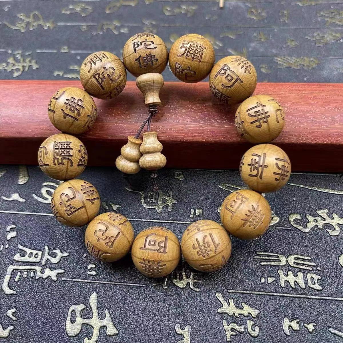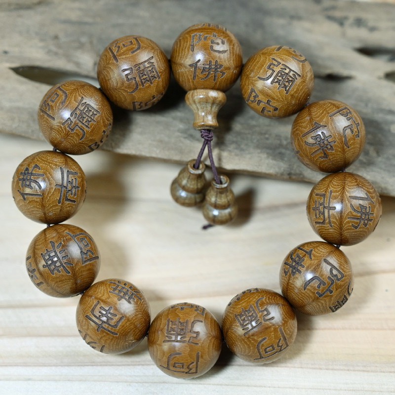 ✨VÒNG TAY GỖ LỤC ĐẠO MỘC LIÊN HOA KHẮC NAM MÔ A DI ĐÀ PHẬT 13 hạt 18ly TẶNG HỘP ĐỰNG