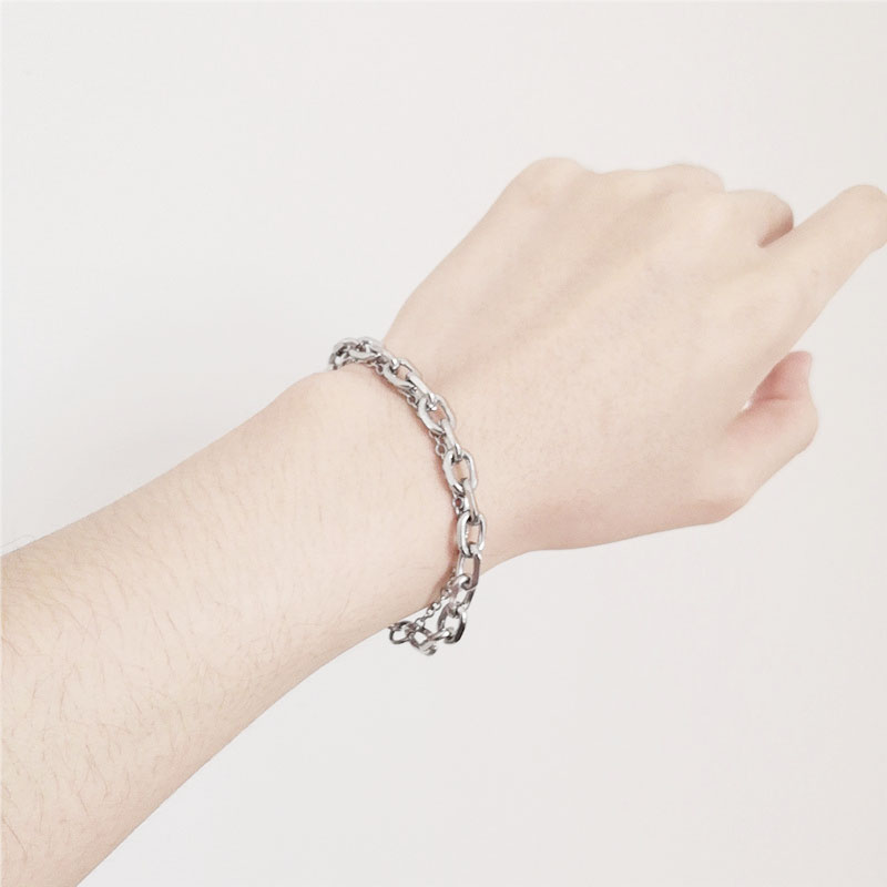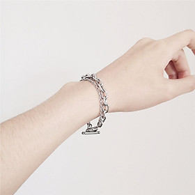 ✨Vòng tay hai lớp phiên bản Hàn Quốc bằng thép titan niche khoá OT hip hop cá tính