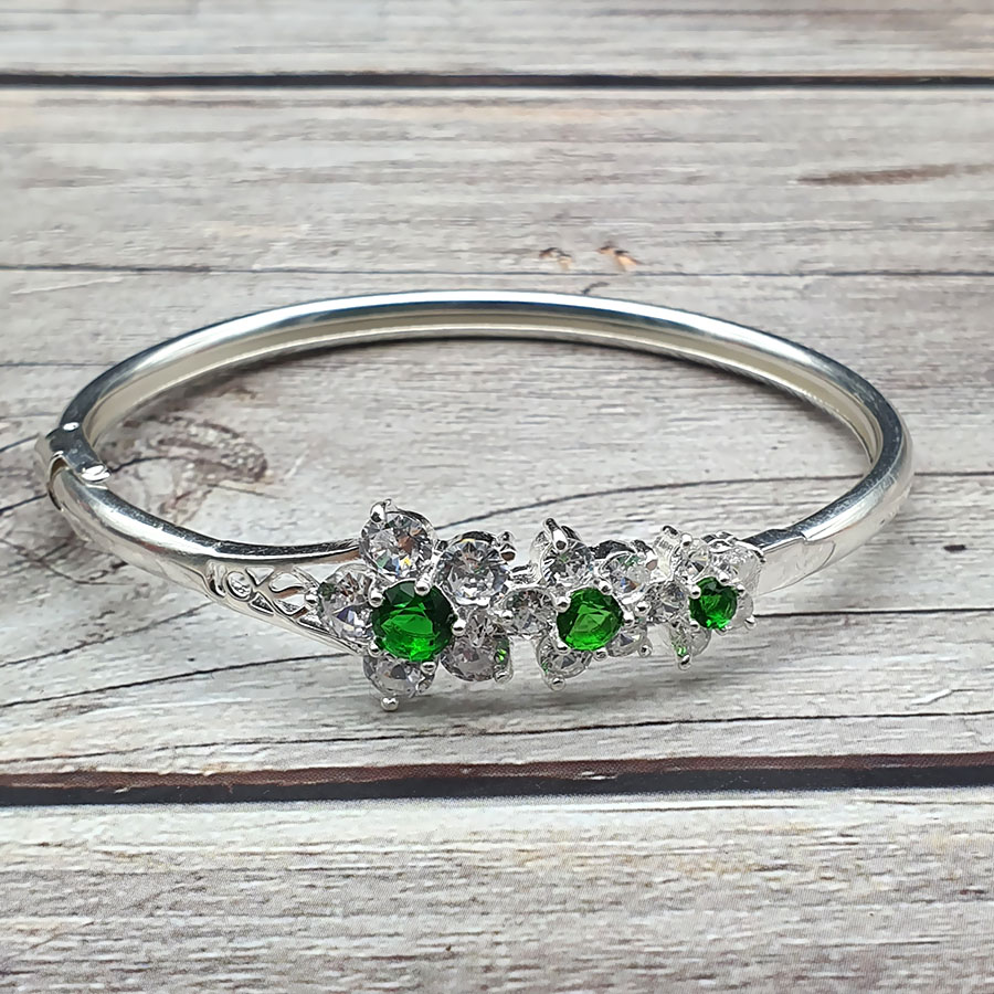 Vòng , Lắc Tay Nữ BẠC HIỂU MINH LTU315 Dạng Kiềng Hoa Đá Xanh Lấp Lánh