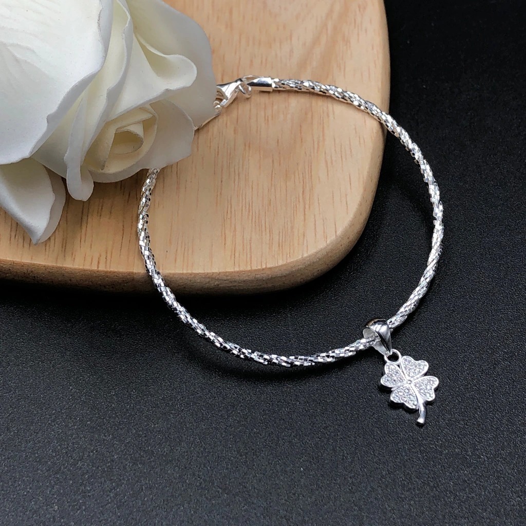 Lắc Tay Nữ Bạc 925 Cỏ 4 Lá May Mắn BẠC HIỂU MINH LTU609