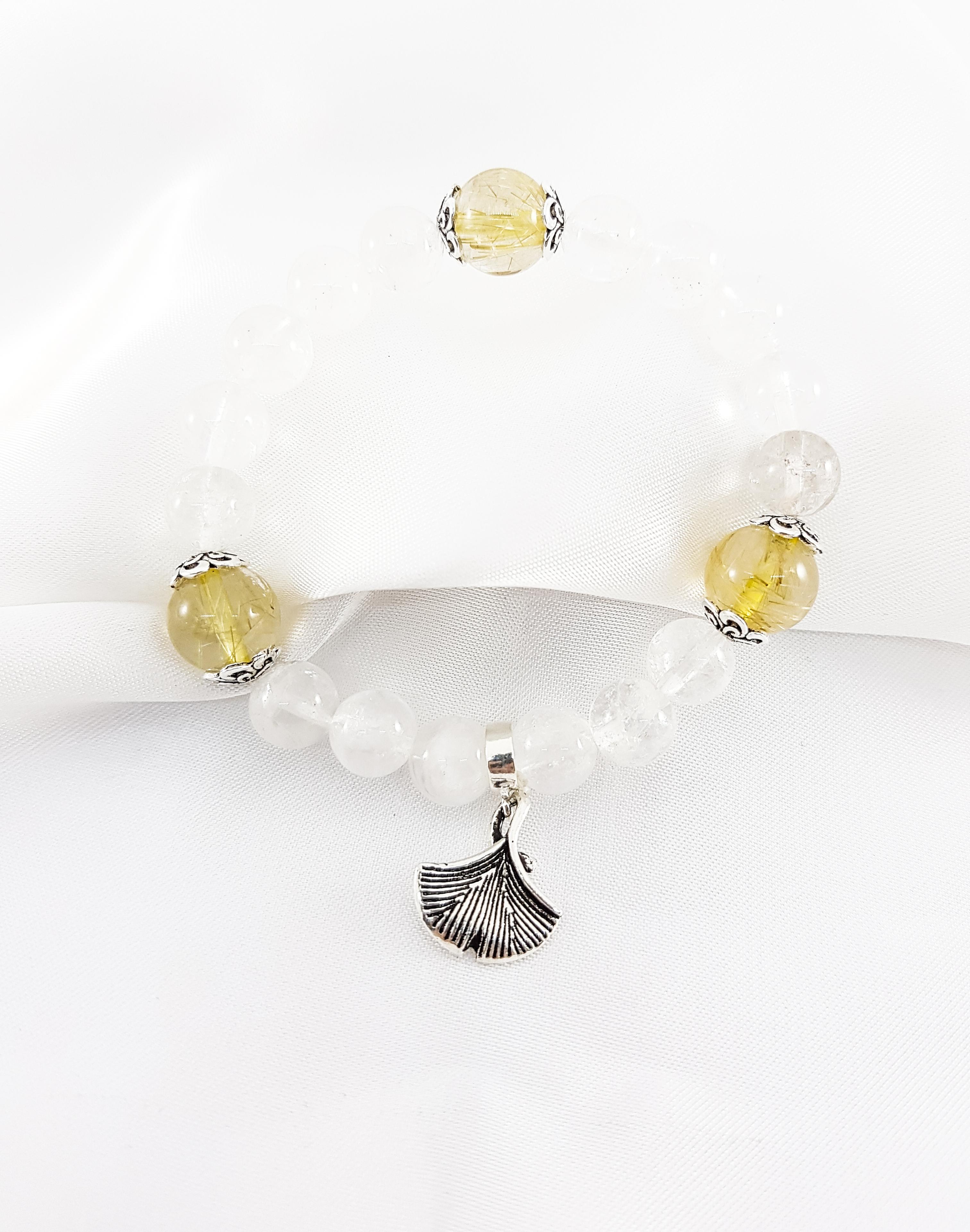 ✨Vòng tay mệnh kim, thủy đá thạch anh ưu linh trắng mix đá thạch anh tóc vàng