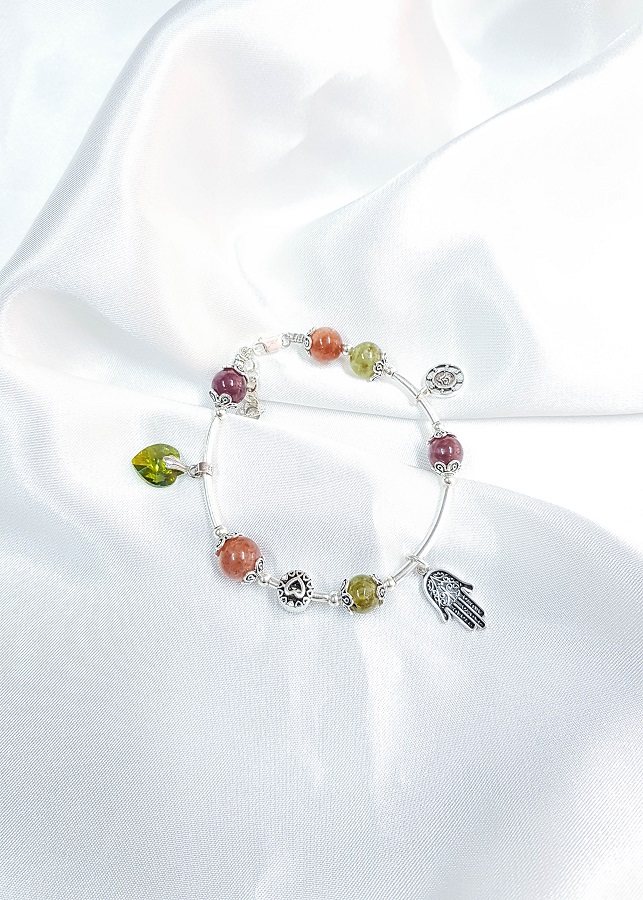 Vòng tay đá mắt hổ tam tài đa sắc mix charm bạc 925 cao cấp, kiểu dáng độc đáo, hợp thời trang rất phù hợp với các bạn nữ yêu thích trang sức Đá mắt