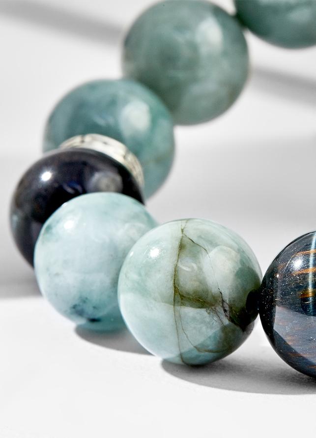 - Vòng Đá Amazonite Mix Lapis Và Charm Bạc Ngọc Quý Gemstones VPT039 được làm từ đá amazonite được hình thành trong tinh thể lăng trụ, có màu xanh ngọc đặc trưng giống màu biển. -