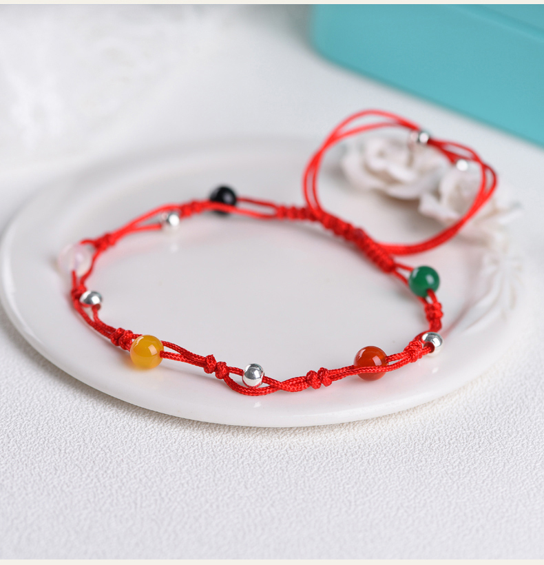 Mua tại TiktokVòng tay Nữ phong thủy gắn hạt đá phong thủy đa sắc kết dây thủ công