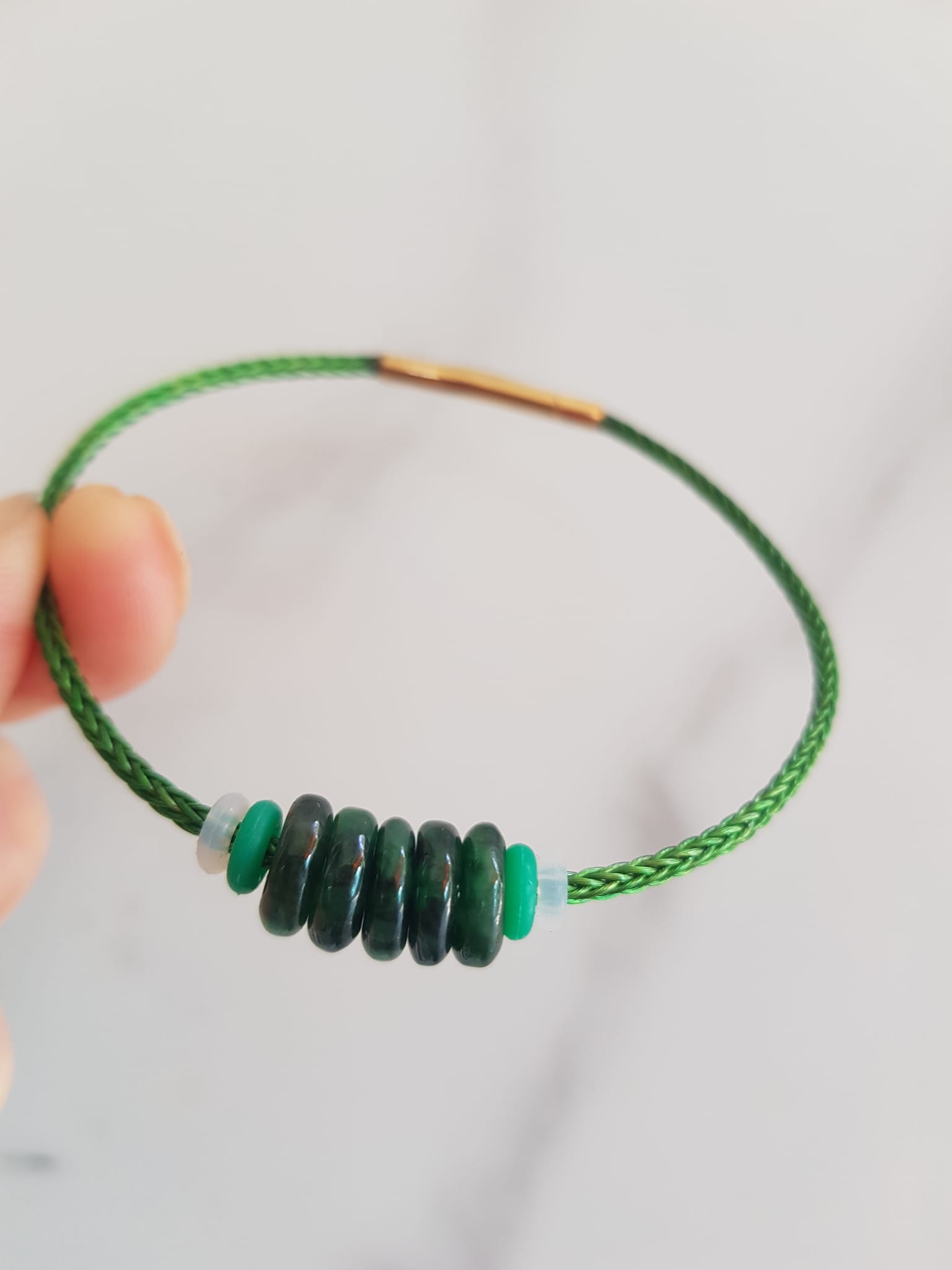 Vòng tay phong thủy nữ charm kiểu 5 đồng tiền Xanh Đậm dây xanh may mắn Đá cẩm thạch tự nhiên xanh đậm đẹp phối dây màu xan có khoen chắc chắn Hợp nữ mệnh
