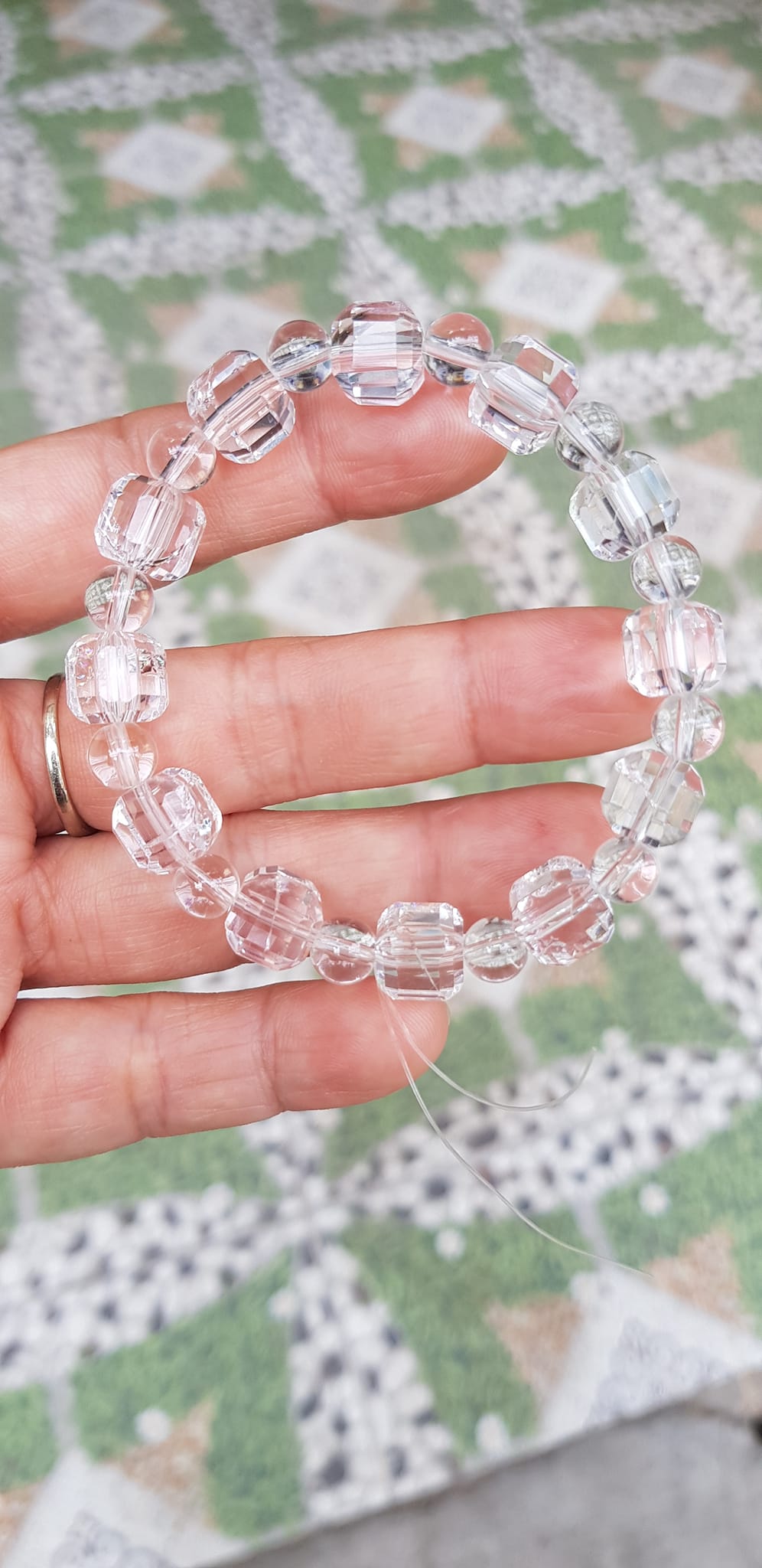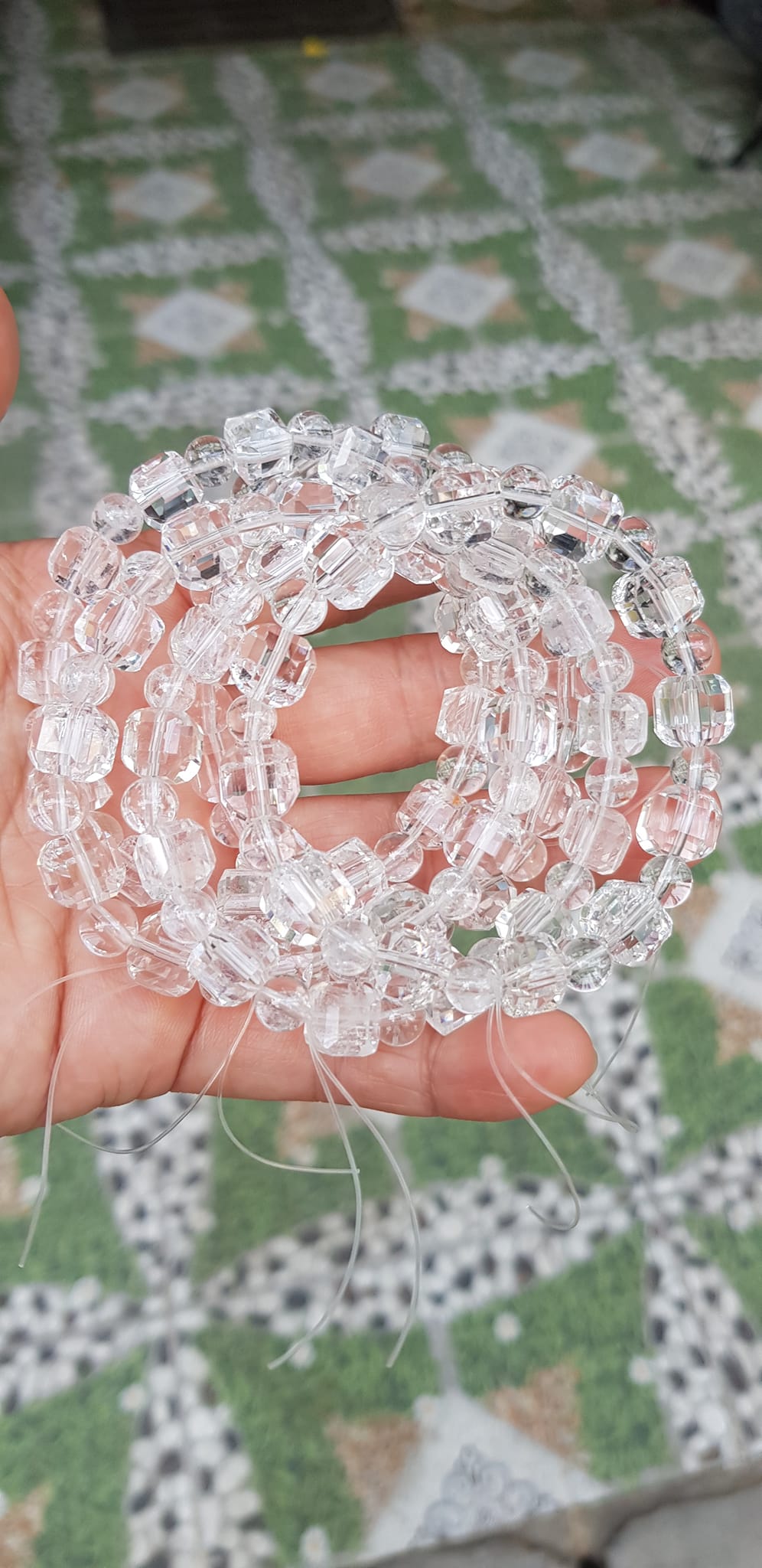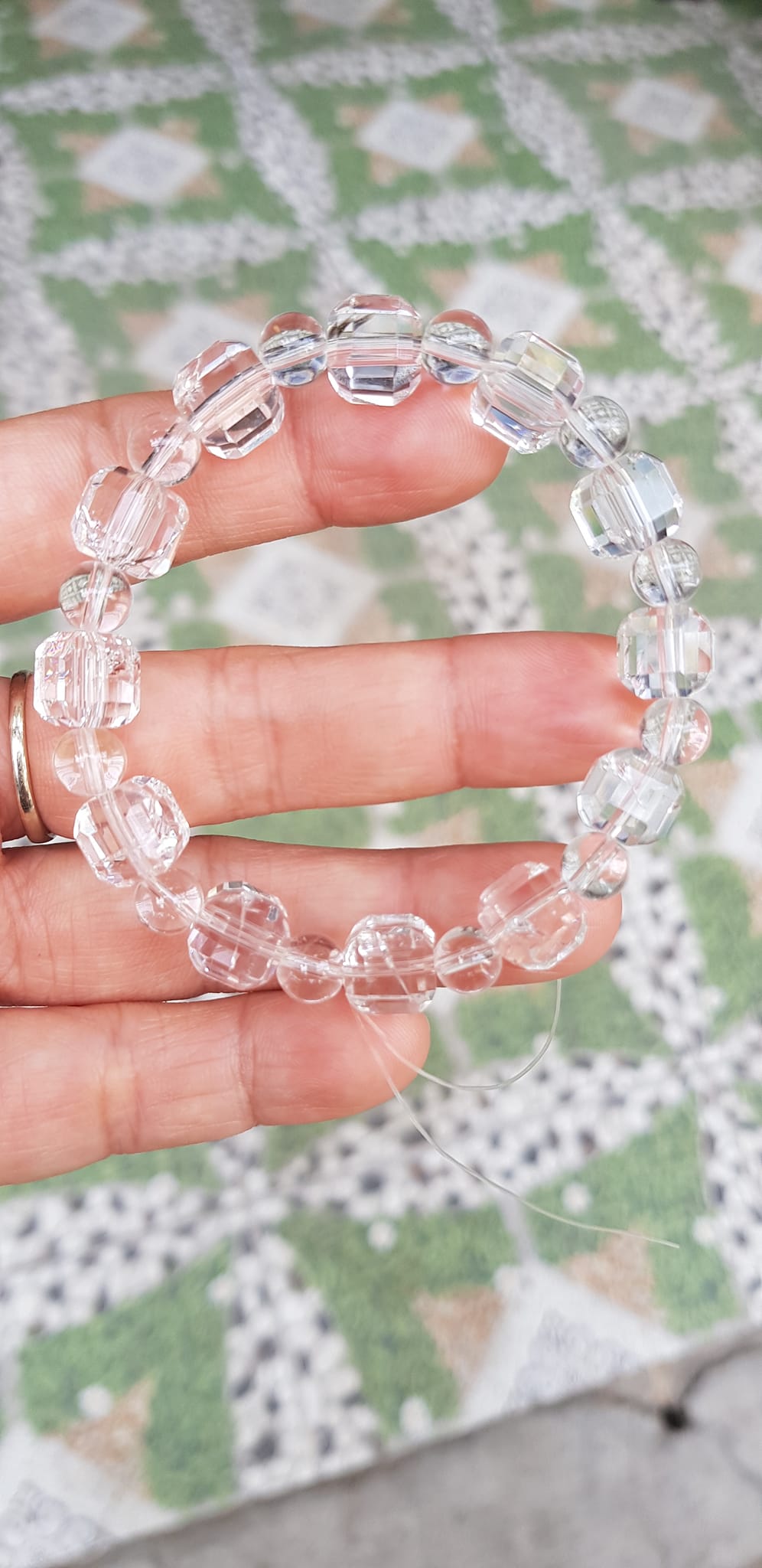 ✨ Vòng tay phong thuỷ nữ đá thạch anh trắng trong tự nhiên kiểu vuông giác tròn Size hạt vuông 10mm hạt tròn nhỏ 6mm Nữ mệnh kim mệnh Thủy đeo hợp may mắn tốt sức khoẻ công việc ạ