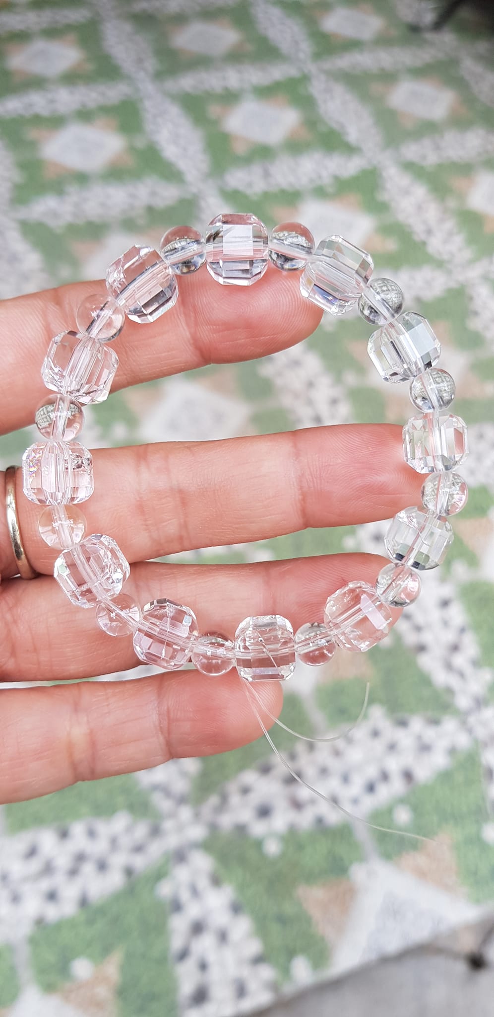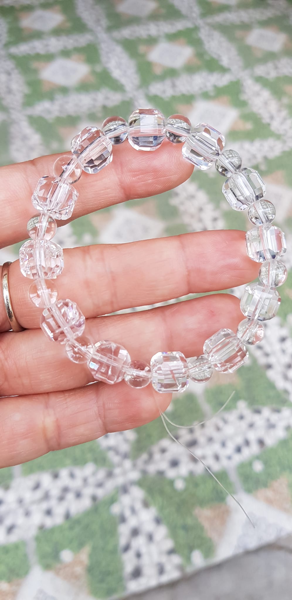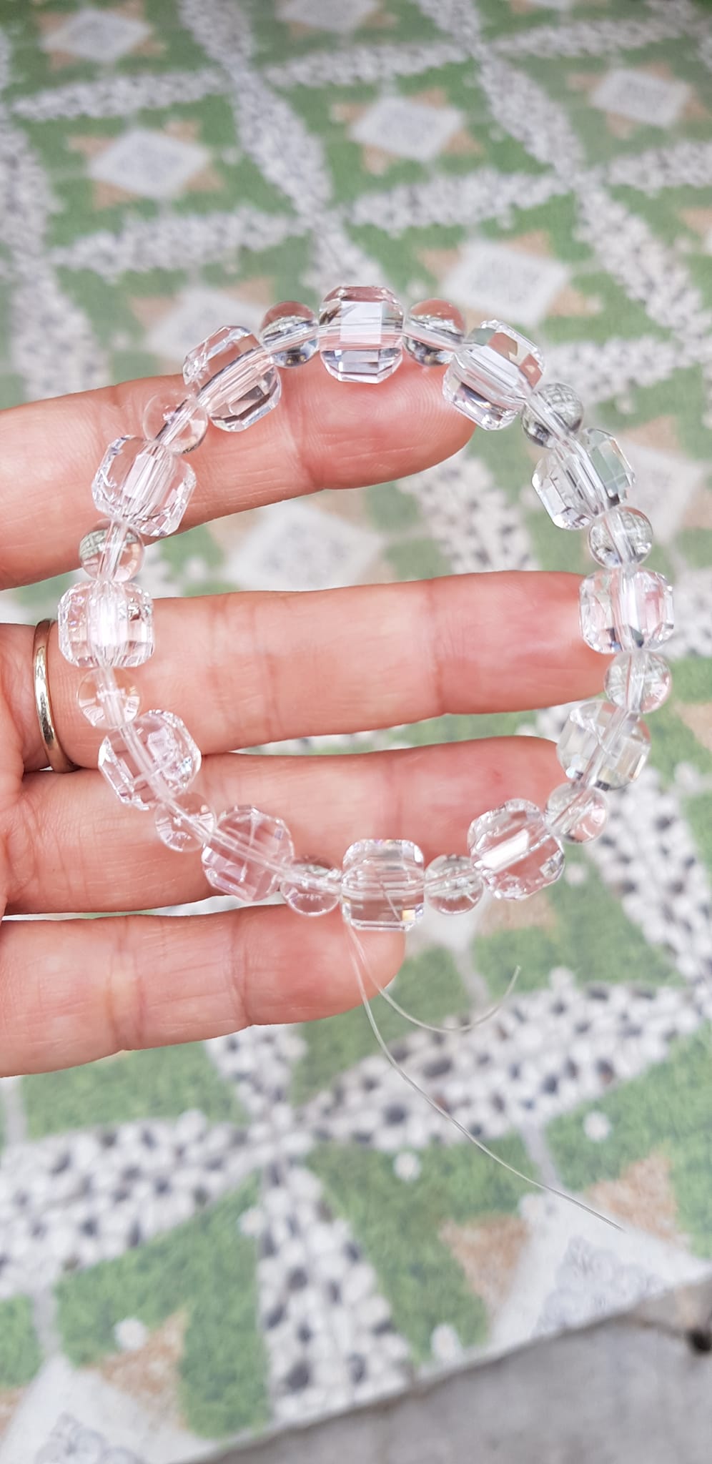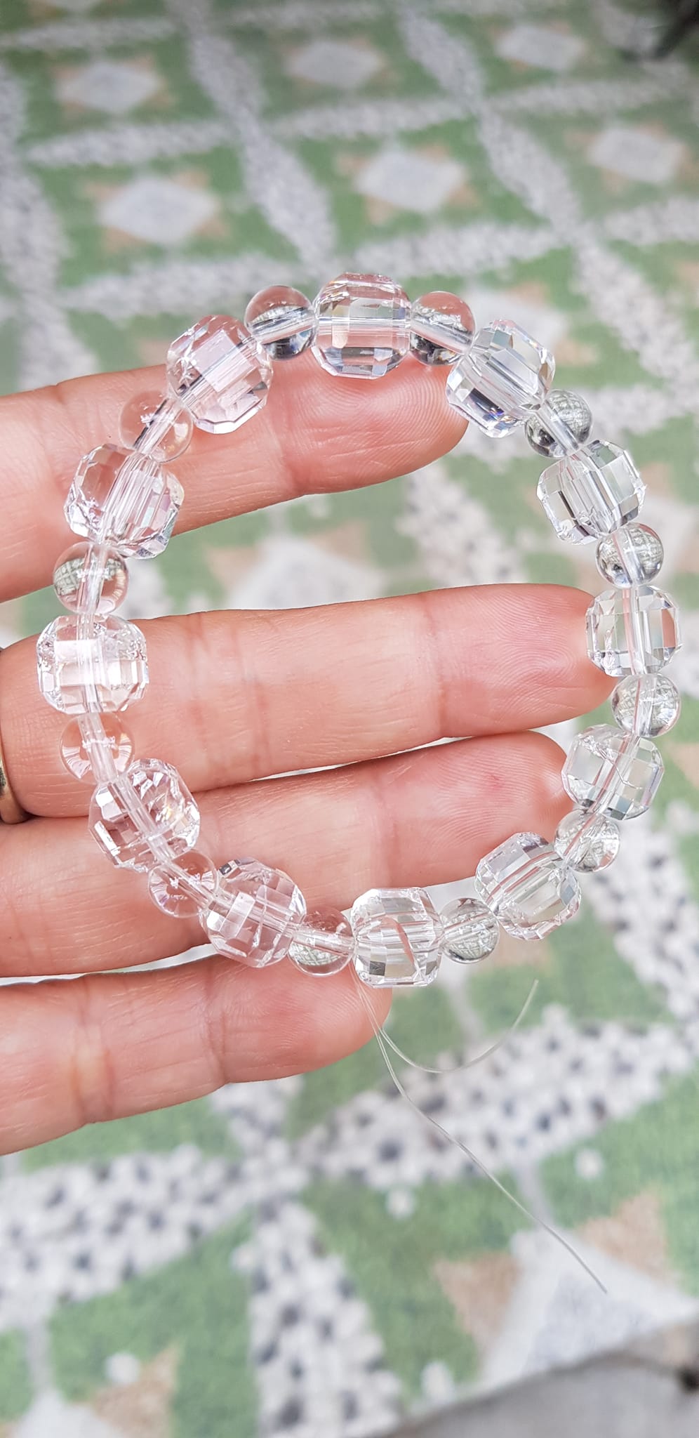 ✨ Vòng tay phong thuỷ nữ đá thạch anh trắng trong tự nhiên kiểu vuông giác tròn Size hạt vuông 10mm hạt tròn nhỏ 6mm Nữ mệnh kim mệnh Thủy đeo hợp may mắn tốt sức khoẻ công việc ạ