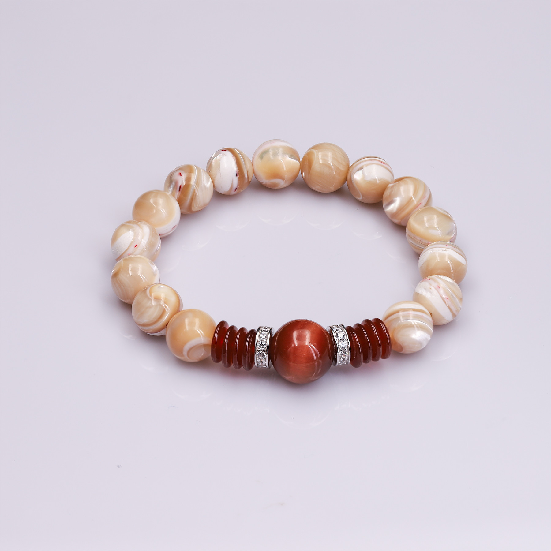 Vòng tay phong thuỷ đá Mắt Hổ Vàng Tâm 8 ly mix Khoen Mã Não by Anqlo là sản phẩm được chế tác tinh xảo, có độ hoàn thiện cao bởi các nghệ nhân lâu