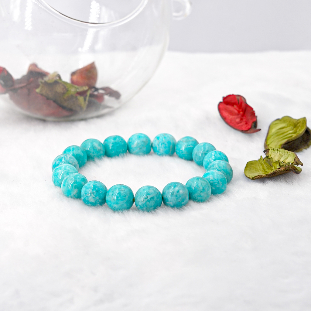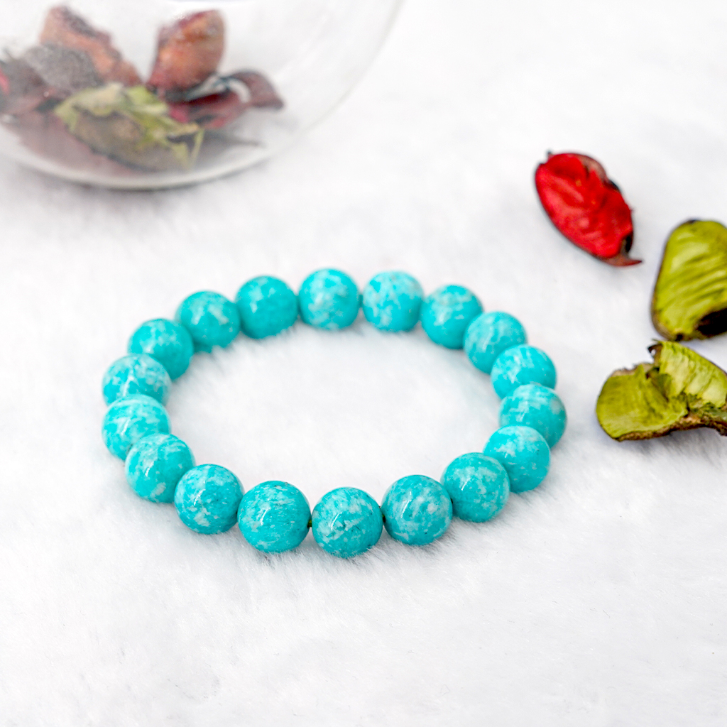 Vòng tay phong thủy đá Amazonite có màu xanh ngọc đặc trưng, giống như màu của nước biển sâu, tương hợp với những người mệnh Thủy, và tương sinh với những người mệnh Mộc. Vòng tay phong thủy giúp chủ sở hữu tránh được tai ương bất ngờ, gặp nhiều may mắn hơn, công việc thuận lợi, tiền tài thịnh vượng, sức khỏe ổn định, tình duyên khởi sắc, cuộc sống hanh thông và suôn sẻ hơn trước rất nhiều.
