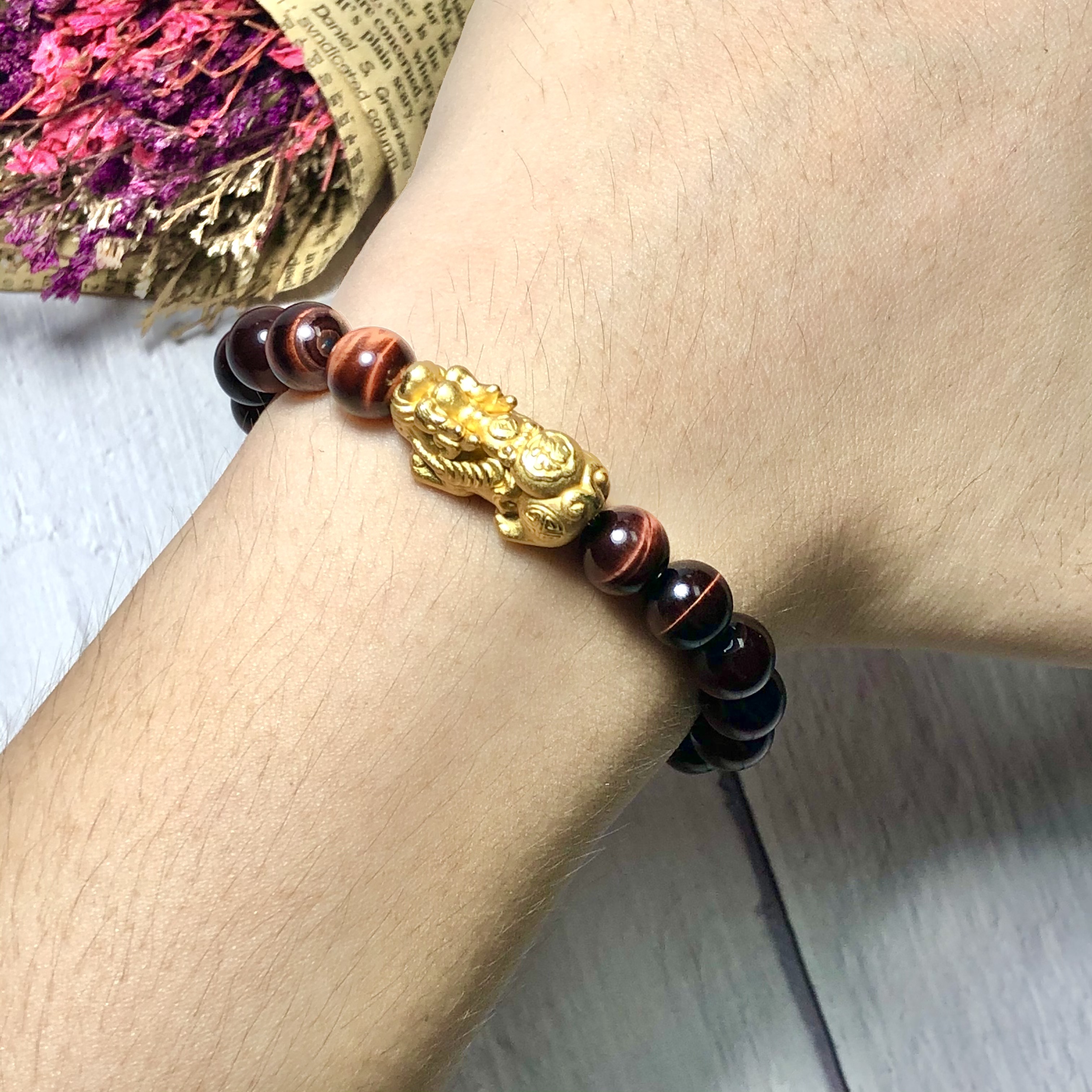 Vòng tay phong thủy đá mắt hổ nâu đỏ phối tỳ hưu - Hợp mệnh thổ, mệnh hỏa | Ngọc Quý Gemstones |