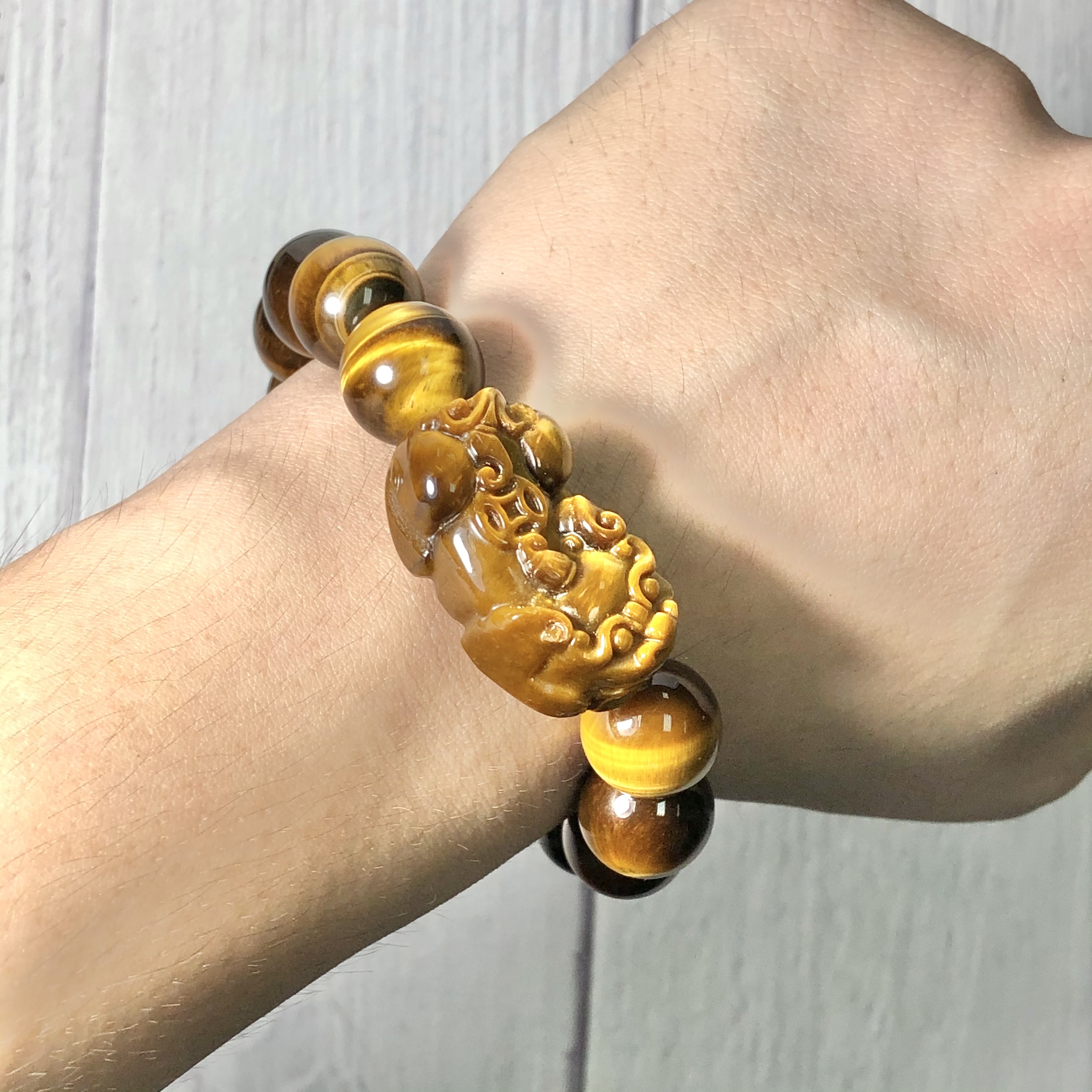 💥Con Tỳ Hưu Đá Mắt Hổ Vàng Nâu Tự Nhiên To Phối Vòng Tay Nam size 14mm, 16mm, 18mm ạ 🤳 SUNNY Q8