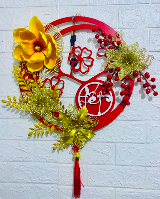 Vòng trang trí Tết - Khung decor hoa -Kích thước 40cm - Cây giả, hoa lụa Decor trang trí nhà cửa Mời bạn ghé thăm gian hàng shop để khám phá các sản phẩm &