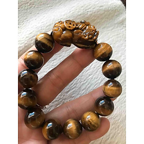 Vòng tay lu thống đá mắt hổ vàng nâu hợp mệnh kim và mệnh thổ