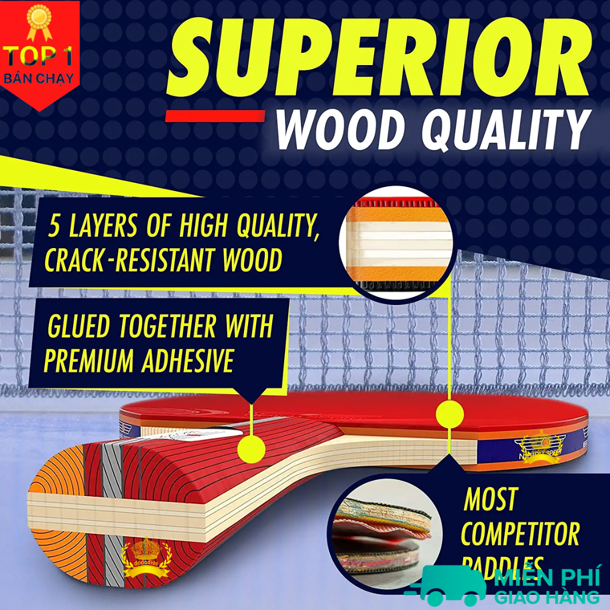 1 Chiếc Vợt Bóng Bàn Cao Cấp Thi Đấu Tiêu Chuẩn Cao, Vợt Số lượng 1 chiếc - Chính Hãng dododios