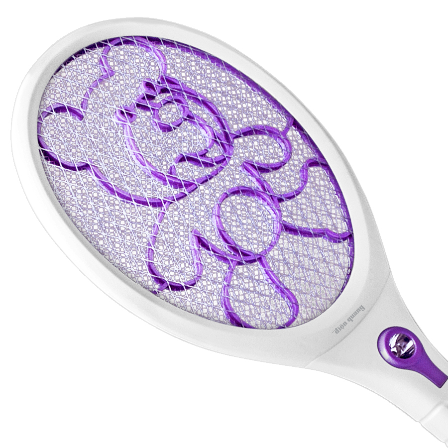 - Vợt Muỗi Điện Quang ĐQ EMR04 WP có kiểu dáng trẻ trung, mặt lưới họa tiết hình chú gấu dễ thương cùng với thiết kế lưới điện an toàn, được làm bằng 2 lớp lưới