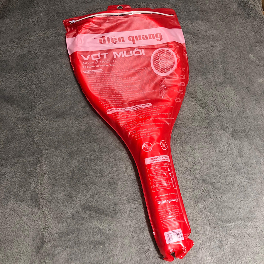 - Đặc biệt, vợt muỗi Điện Quang có đèn LED chiếu sáng và đèn báo có điện thông minh. Cùng với công tắc mở điện linh hoạt trên thân vợt giúp người dùng thao tác dễ dàng khi bật hoặc tắt.