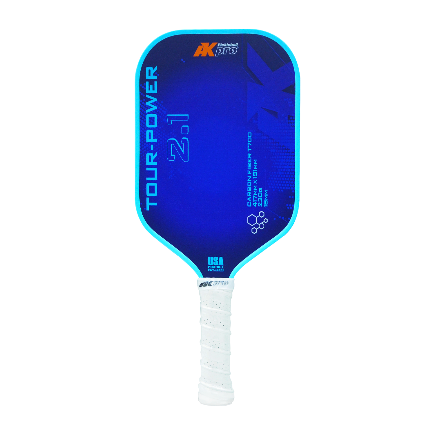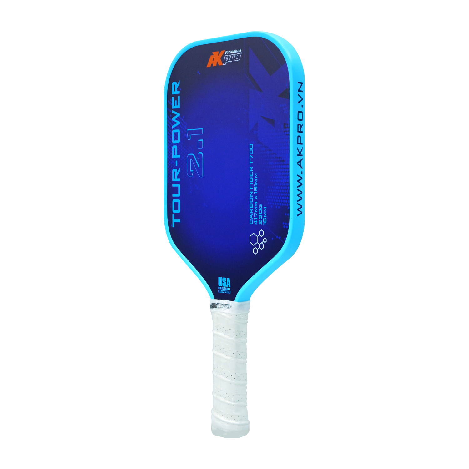 Vợt Pickleball TOUR-POWER 2.1 sử dụng carbon T700 mặt nhám nên tạo xoáy và kiểm soát bóng cực tốt. Loại vật liệu này cũng tạo ra những cú đánh mạnh và chính xác.