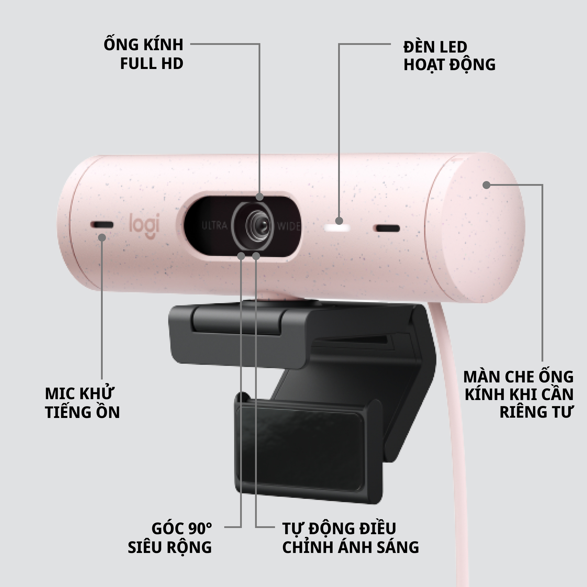 Webcam Logitech Full HD Brio 500 Thể hiện cảm giác tự tin, được nhìn thấy và được nghe thấy trong mọi cuộc gọi điện video. Logitech Brio 500 bao gồm các tính năng như tự động điều chỉnh ánh sáng trong điều kiện ánh sáng yếu, tự động đóng khung để bạn có thể di chuyển trong khi gọi và Chế độ hiển thị để trình bày các đối tượng trên bàn làm việc của bạn. Webcam Brio 500 tạo ra trải nghiệm cuộc họp Google, Teams hoặc Zoom chân thực hơn, cho phép bạn kết nối thực sự với những người khác. CÁC ĐẶC ĐIỂM NỔI BẬT