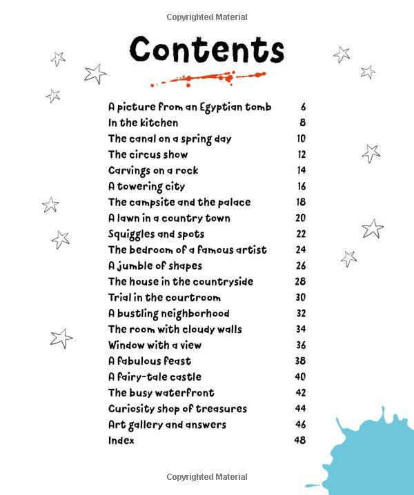 This simple, engaging introduction to art combines superb reproductions of an imaginative selection of artworks by artists ranging from Rousseau and Seurat to Lowry and Van Gogh. With beautifully pitched text supported by friendly cartoon-style illustrations, What's in the Picture? invites young children to search for particular objects or other detail in the paintings displayed. Further questions encourage children to examine each artwork and to explain, very simply, what is happening in the pictures.