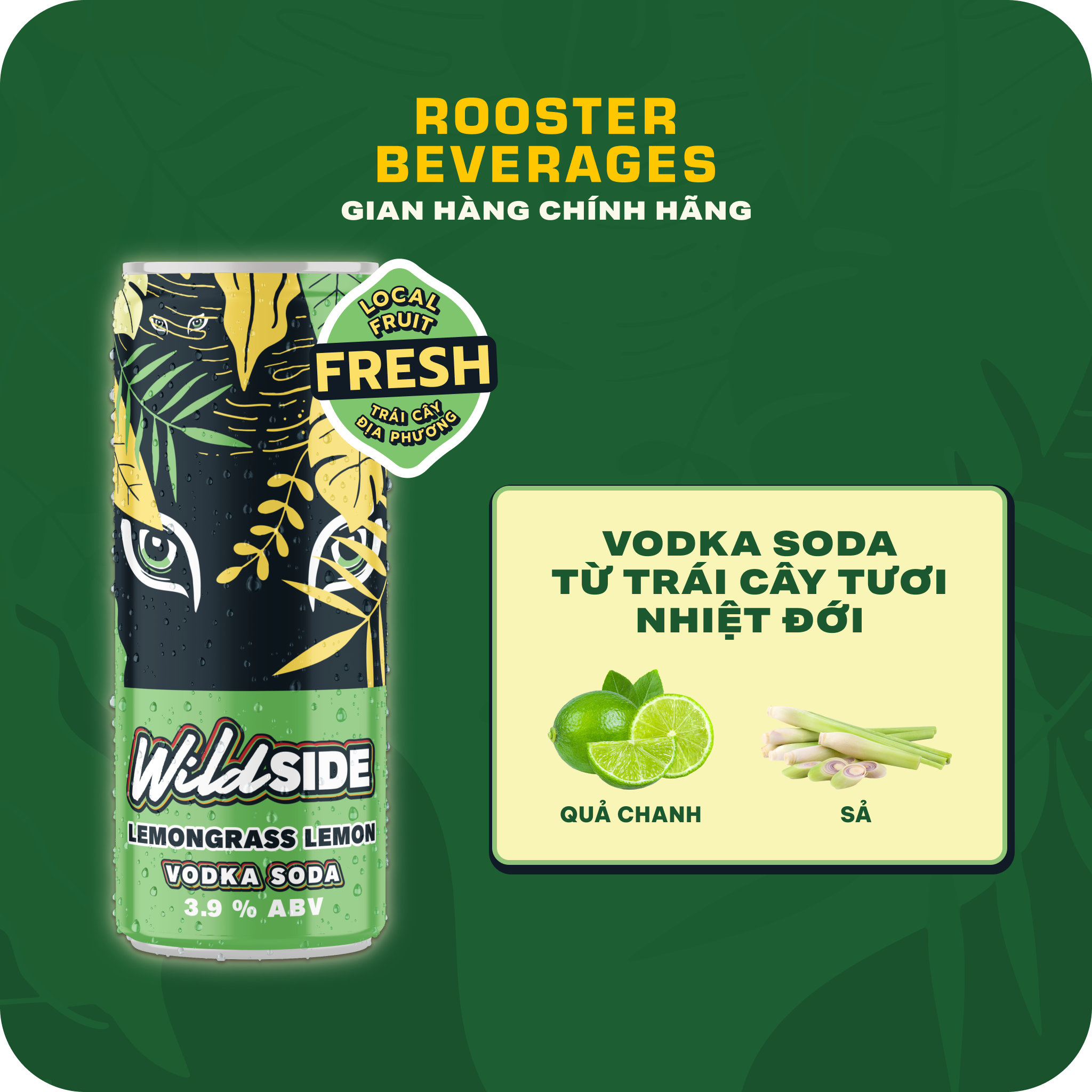 Mua tại TiktokWILDSIDE VODKA SODA CHANH SẢ (LEMONGRASS LEMON) - ĐỘ CỒN 3.9% Nước chanh tươi được pha cùng chiết xuất xả non thanh mát, thêm đường mía ngọt dịu cùng chút cồn lên men từ mật mía để tạo ra dòng vodka soda thủ công Lemongrass Lemon tuyệt hảo. Một hớp soda mát lạnh sẽ đánh thức sự hoang dã trong bạn, khiến mọi cuộc vui thêm tưng bừng! Hãy tận hưởng cuộc vui cùng bạn bè, chia sẻ những điều thú vị cùng nhau với Wildside Vodka Soda!