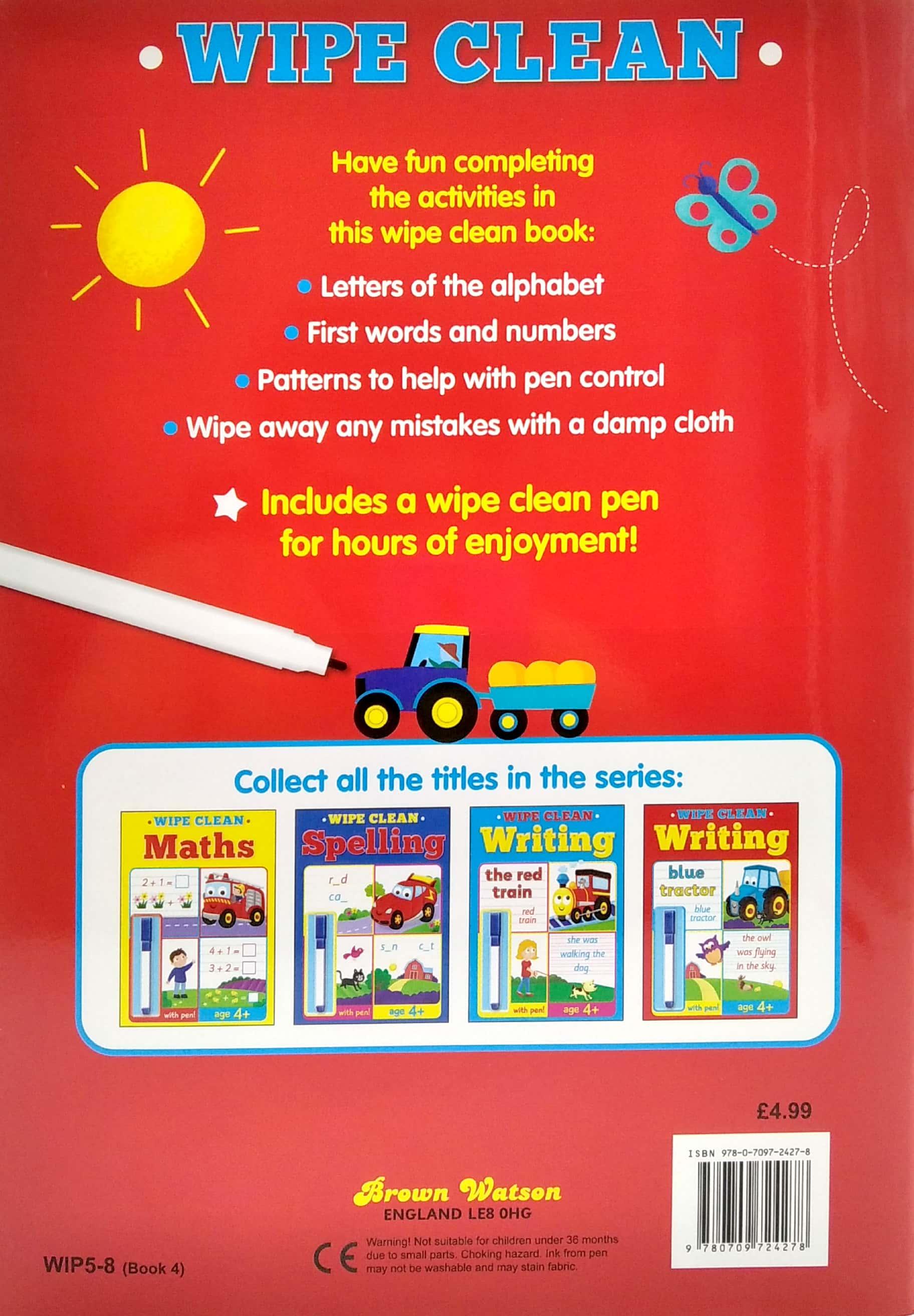 Wipe Clean Bind Up 4+ - Early Learning (With Pen) Practise writing, sums and spelling. Wipe away any mistakes with a damp cloth. With a wipe clean pen so you can practise again and again.