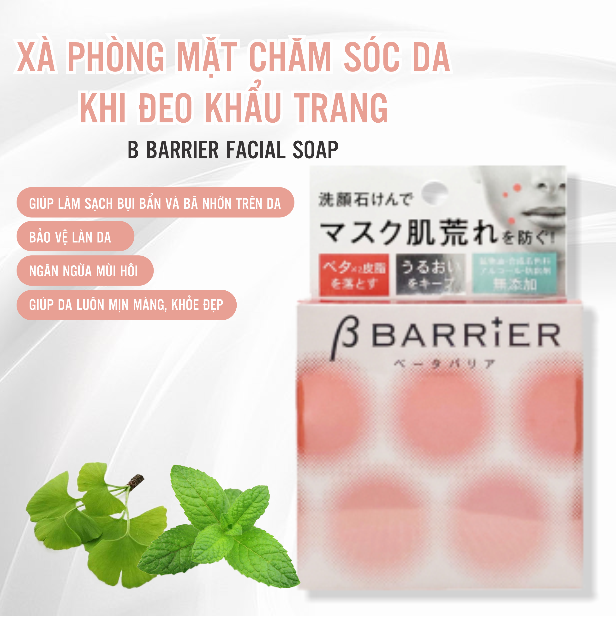 Xà Phòng Mặt Pelican B Barrier Facial Soap Chăm Sóc Da Khi Đeo Khẩu Trang (80g) Qui cách : 1 gói Thương hiệu : Pelican Xuất xứ : Nhật
