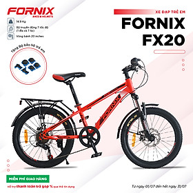Chắc hẳn bạn cũng biết tác dụng của việc đạp xe đạp đến sức khỏe của chúng ta tốt như thế nào, không chỉ cho người lớn mà việc đạp xe còn mang lại những lợi ích tuyệt vời cho trẻ nhỏ, giúp trẻ ngày một phát triển toàn diện hơn. Bên cạnh đó còn giúp trẻ có thêm những kiến thức mới, khám phá những điều mới mẻ, tốt cho não bộ, dễ dàng nâng cao trí nhớ với mỗi đoạn đường từng đi qua. Tuy nhiên thị trường xe đạp trẻ em rất đa dạng khiến bậc phụ huynh gặp khó khăn khi lựa chọn cho trẻ một chiếc xe đạp phù hợp. Vì vậy, Fornix đề cử FORNIX FX20 cho các bậc phụ huynh là một dòng xe mang phong cách cá tính và hiện đại mà vẫn đủ tiêu chuẩn phù hợp với trẻ nhé.   Thông số kỷ thuật xe đạp trẻ em Fornix FX20: Khung sườn xe: Khung sườn xe được làm từ hợp kim thép cao cấp với kiểu dáng mạnh mẽ và màu sắc bắt mắt. Vì chất liệu khung là hợp kim thép cao cấp nên rất chắc chắn và bền bỉ sẽ giúp trẻ tự tin khi chạy hơn.   Bộ truyền động: Tích hợp bộ truyền động 7 tốc độ (1 đĩa và 7 líp) giúp trẻ có thể thay đổi tốc độ đạp nặng nhẹ, nhanh chậm tùy ý. 07 líp sau   01 đĩa trước   Phuộc trước: Phuộc xe được làm từ hợp kim thép cao cấp nhằm hạn chế tối đa bị xóc ở phần cổ xe khi di chuyển trên địa hình xấu.   Phanh xe: FORNIX FX20 được trang bị bộ phanh thắng đĩa trước và sau vừa tăng tính thẩm mỹ của xe, vừa đảm bảo sự an toàn tuyệt đối cho trẻ khi đạp xe ngoài đường. phanh đĩa trước    phanh đĩa sau    Tay cầm ngang: Thiết kế tay lái ngang nhỏ gọn cùng với bộ chuyển tốc giúp trẻ có thêm sự khám phá trong quá trình đạp xe trên nhiều địa hình khác nhau   - Ngoài ra, FORNIX FX20 còn được kết hợp thêm baga chở người phía sau cứng cáp và chịu lực tốt. Để tăng độ an toàn cho trẻ, xe được trang bị thêm tấm phản quang ở bánh trước và sau giúp các bậc phụ huynh yên tâm hơn khi trẻ di chuyển ở những khu vực thiếu sáng. Hãy ghé ngay FORNIX để được trải nghiệm những tính năng mới của dòng xe đạp trẻ em Fornix FX20 nhé!