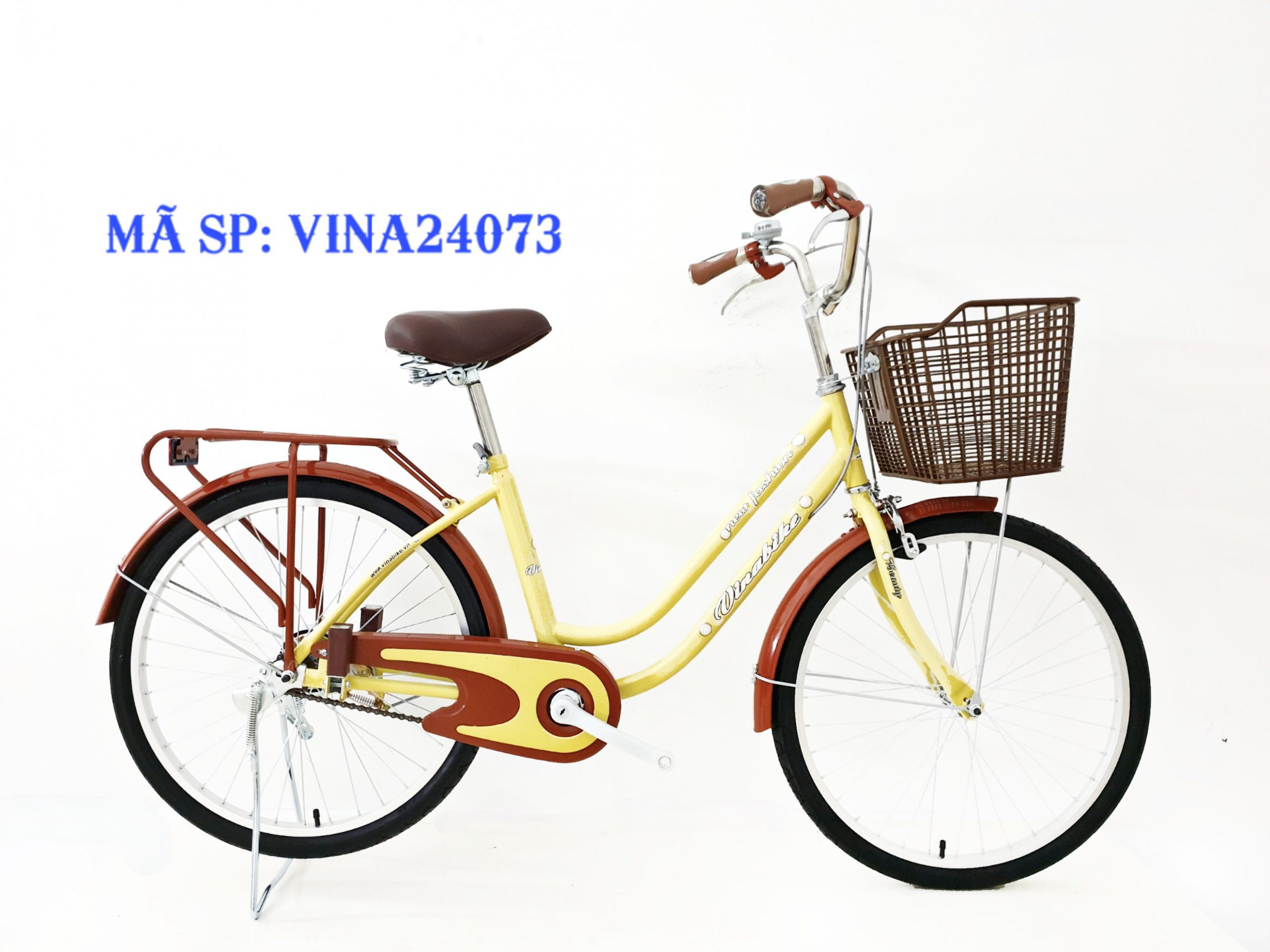 THÔNG TIN CHI TIẾT Khung : thép Bánh xe : kích thước 24 inch Vành : thép Nan hoa : 36 Giỏ xe thiết kế cổ điển : chất liệu nhựa PVC, kích thước 27