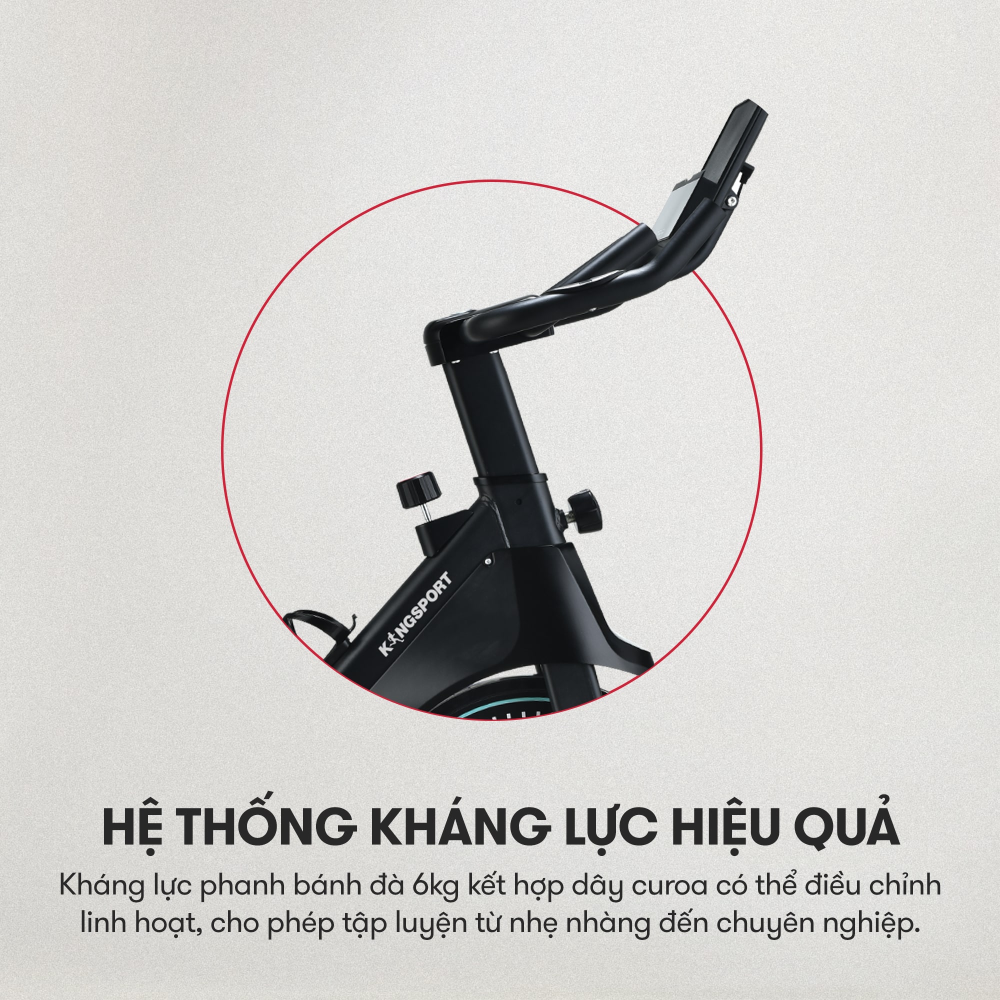 Xe đạp tập KingSport Active E01 sẽ mang đến cho người dùng những bài tập đầy thử thách với bánh đà 6kg. Bánh đà này đóng vai trò tạo lực cản để tăng cường độ cho các bài tập đạp xe. Hơn nữa, mức kháng lực này không cố định. Người dùng có thể tùy chỉnh kháng lực sao cho phù hợp với thể trạng và mục tiêu tập luyện của mình. Do đó, ngay cả những người lớn tuổi với sức khỏe yếu cũng có thể đạp xe hàng ngày để nâng cao sức khỏe và tăng cường khả năng vận động.