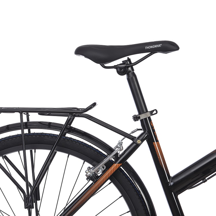 Mua tại Tiktok- Thiết kế tối giản, gọn đẹp Xe đạp đường phố thể thao Thống Nhất GN06-26 2.0 có kiểu dáng hiện đại, đường nét tinh tế, tông màu ghi, đen và cam mang đến cho bạn nhiều màu sắc để lựa chọn phù hợp với sở thích của mình. Mẫu xe đạp này ứng dụng công nghệ sơn tĩnh điện giúp duy trì tính thẩm mỹ cao, cho khả năng chống chịu tốt trước các điều kiện môi trường khác nhau. Đáp ứng nhu cầu chơi thể thao, làm phương tiện đi học, đi làm thường ngày của trẻ em và người lớn có chiều cao trung bình khoảng 135 cm - 147 cm. Sườn thép gia công chắc chắn Với khung bằng thép có độ bền cao, giữ cấu trúc xe vững chãi, cho khả năng chịu tải trọng toàn xe lên tới 110 kg. Thiết kế dây phanh được đặt dọc theo sườn xe một cách gọn gàng giúp xe đạp đường phố Thống Nhất trông đẹp mắt và hỗ trợ cho việc bảo dưỡng thuận tiện hơn. Chuyển hướng xe linh hoạt với ghi đông ngang Giống như khung sườn, ghi đông cũng được làm từ thép, vật liệu giúp tay lái cứng cáp kết hợp thiết kế ngang đơn giản giúp bạn kiểm soát hướng đi, lái xe dễ dàng. Bộ phận tay nắm được gắn chặt vào ghi đông, chế tạo cho độ bám cao để bạn nắm ổn định, không sợ trượt tay trong khi lái xe đạp đường phố Hệ thống phanh nhạy bén, sử dụng an toàn Tích hợp phanh vành trước và sau cho phản hồi nhanh mỗi khi bạn thắng xe, nhờ đó giúp đảm bảo cho người lái xe an toàn mỗi khi cần dừng xe lại hoặc xử lý tình huống khẩn cấp. Ngoài ra, với kết cấu đơn giản, hệ thống phanh dễ thay mới và bảo trì, giúp tiết kiệm chi phí và thời gian cho bạn tối đa. Phuộc cứng hạn chế rung lắc Mẫu xe đạp Thống Nhất này được trang bị phuộc trước bằng thép rắn chắc giúp giữ cho xe di chuyển ổn định từ mặt đường phẳng cho đến những đoạn đường gồ ghề, khó di chuyển. Yên xe mềm mịn, ngồi thoải mái mọi lúc Chất liệu da cho yên xe ngồi êm ái trong suốt thời gian bạn lái xe, dễ dàng lau chùi khi bám bẩn. Yên phụ cứng cáp, chịu lực tốt, đáp ứng tải trọng 30 kg cho bạn chở hàng hóa hoặc người tiện lợi. Di chuyển mượt mà với bánh xe 26 inch Cả hai bánh xe đều có kích thước 24 inch phù hợp với cấu trúc của toàn bộ xe khi bạn lái nhanh hay chậm đều hoạt động ổn định, nhịp nhàng. Bộ phận lốp xe 24"x1 3/8 sử dụng bền, trên bề mặt có nhiều rãnh giúp tăng tính ma sát cho quá trình lái xe thêm vững vàng. Vành xe bằng hợp kim nhôm có tính chống oxy hóa, chống ăn mòn tốt, khối lượng nhẹ nên cho tổng thể xe nhẹ hơn, di chuyển dễ dàng hơn khi đi qua những địa hình khó khăn. Tiện ích đi kèm Sử dụng đèn phản quang giúp phản chiếu ánh sáng, bảo vệ người dùng tốt hơn khi đi qua những đoạn đường khuất trong bóng tối. Có chân chống thiết kế ở vùng bánh xe sau giúp cho xe tự đứng vững, không bị nghiêng, ngã mà không cần bất kỳ điểm tựa nào. Thông tin chung