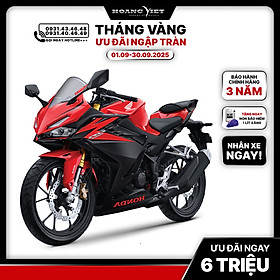 Mua tại Tiktok- Mô tả sản phẩm: THIẾT KẾ Hình ảnh thể thao với tem xe và phối màu mới nổi bật CBR150R 2023 được phối màu bắt mắt hơn, mang lại hình ảnh khỏe khoắn cho người cầm lái. Màu sơn trên thân xe được kết hợp hài hòa, không những mang lại hiệu ứng thị giác mạnh mẽ mà còn tạo làn gió mới trong phong cách của chủ sở hữu. Phiên bản Thể thao mang màu đỏ cùng phần mặt nạ trước màu trắng và vành xe màu vàng mới, tạo hình ảnh năng động, khỏe khoắn. Phiên bản Đặc biệt sở hữu sắc đen nhám, được điểm thêm chi tiết vành xe màu nâu nổi bật. Phiên bản Tiêu chuẩn trẻ trung khi được tận dụng tối đa sắc đỏ và đen. Hệ thống đèn LED nổi bật CBR150R nổi bật với hệ thống chiếu sáng được trang bị toàn bộ đèn LED, đèn phía trước tách thành hai tầng với chức năng riêng biệt: đèn ban ngày tầng trên và đèn pha/cos tầng dưới giúp mang lại khả năng chiếu sáng tối ưu. Đồng hồ kỹ thuật số LCD hiện đại Cụm đồng hồ kỹ thuật số màn hình LCD được bố trí hiển thị các thông số kỹ thuật như tốc độ, vòng tua máy, cấp số, báo xăng và xi nhan cho người lái dễ dàng quan sát khi vận hành xe trên đường. Giảm xóc hành trình ngược Up side down thể thao CBR150R khẳng định là mẫu xe côn tay thể thao dành cho thành thị với trang bị giảm xóc hành trình ngược. Phần sơn mạ vàng giúp toàn bộ phần trước của xe mang hình ảnh cứng cáp, cao cấp. Bình xăng trước dung tích lớn với đường nét sắc cạnh Bình xăng phía trước với dung tích lớn 12 lít, với ốp bình xăng được cắt sắc nét tạo sự gọn gàng và độ thoáng nhất định cho góc lái, giúp người điều khiển thoải mái di chuyển và khám phá mọi cung đường. ĐỘNG CƠ - CÔNG NGHỆ Động cơ DOHC 150cc đầy uy lực Sở hữu khối động cơ dung tích 150cc, xy-lanh đơn, DOHC, hộp số 6 cấp, làm mát bằng dung dịch, CBR150R có khả năng sản sinh mô-men xoắn cực đại 14,4 Nm tại 7.000 vòng/phút giúp xe vận hành mượt mà và phấn khích. TIỆN ÍCH & AN TOÀN Hệ thống chống bó cứng phanh ABS hai kênh Với trang bị hệ thống chống bó cứng phanh ABS trên cả bánh trước và bánh sau giúp người lái an tâm di chuyển và tự tin xử lý mọi tình huống Đèn tín hiệu dừng khẩn cấp ESS Hệ thống đèn cảnh báo dừng đột ngột (ESS) sẽ báo hiệu cho các phương tiện xung quanh có thể kịp thời phản ứng trong trường hợp xe phanh khẩn cấp. Bộ ly hợp hỗ trợ và chống trượt hai chiều CBR150R được trang bị bộ ly hợp hỗ trợ và chống trượt hai chiều tương tự các mẫu xe phân khối lớn giúp chuyển số dễ dàng, tránh tình trạng trượt và khóa bánh trong các tình huống về số đột ngột, giúp người lái an tâm trên mọi cung đường