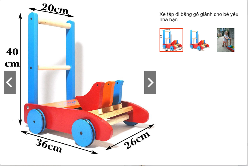 - Kích thước: 36x29.5x43.5cm - Màu sắc và họa tiết thay đổi theo từng đợt nhập hàng (giao ngẫu nhiên Những ưu điểm của xe gỗ tập đi giúp bé sẽ vô cùng thích thú: