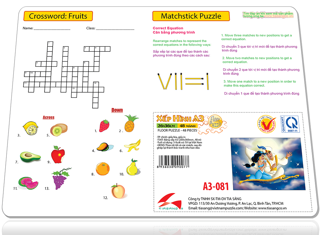 ✨Xếp hình Tia Sáng Aladin và cây đèn thần (48 Mảnh Ghép) - Tặng kèm câu đố mặt sau cho bé