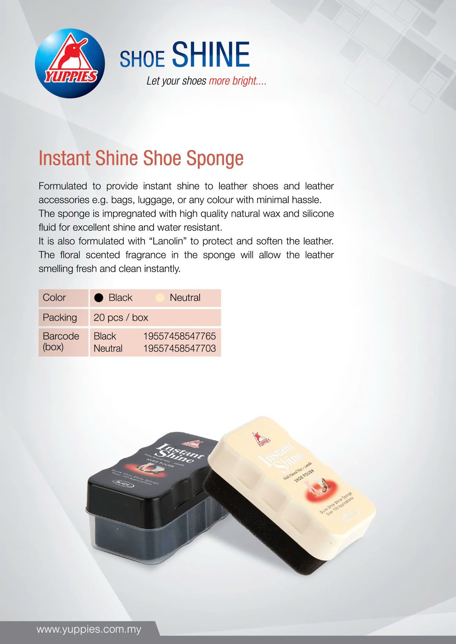 Chúng tôi là đại lý chính hãng cho các sản phẩm hãng Yuppies- Malaysia nên quý khách có thể yên tâm về thương hiệu và sản phẩm. Xi Instant Shine có màu đen và không