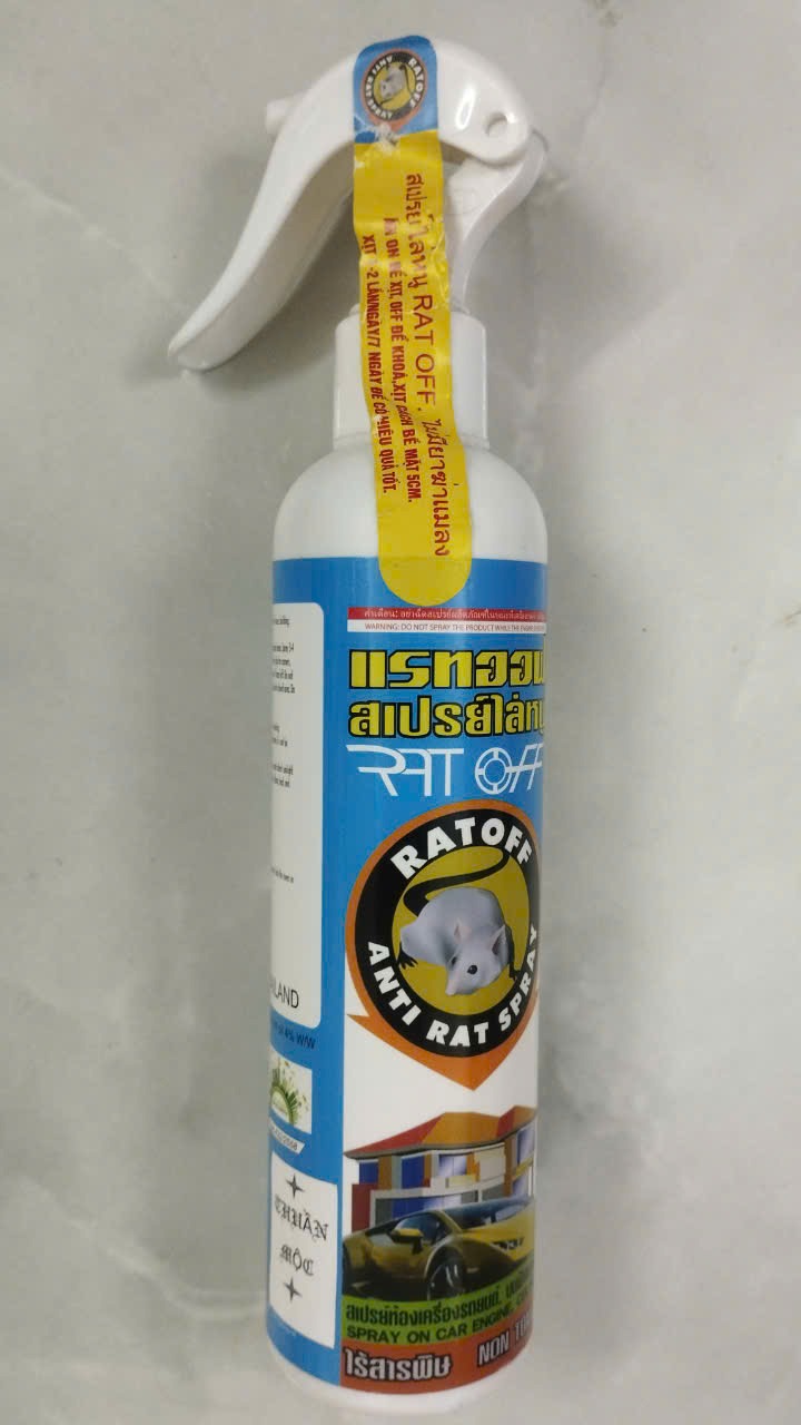 Chai Xịt Đuổi Chuột RAT OFF ANTI RAT SPRAY Xuất xứ: Thái Lan Thể tích: 300ml HSD: 1 năm kể từ ngày mở nắp sản phẩm ️ Nhà nào có “anh tí” quanh quẩn thì