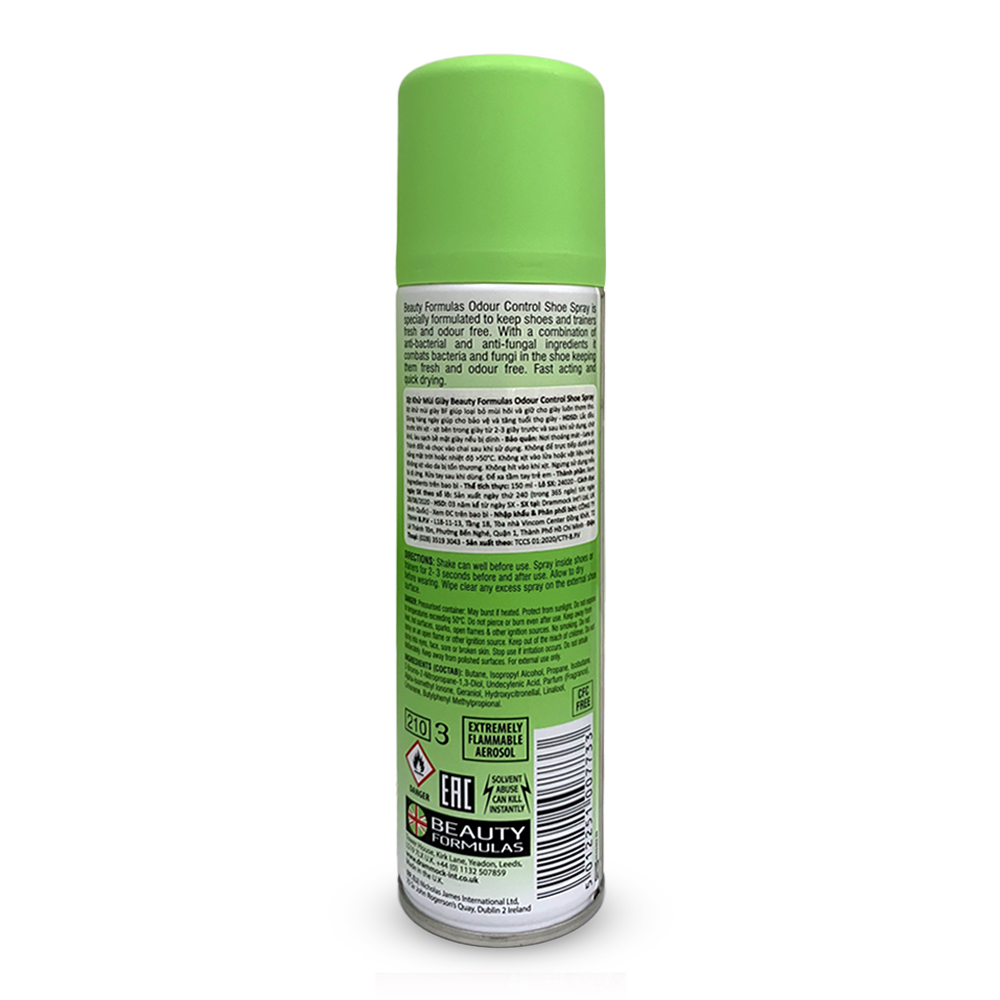 - Xịt Khử Mùi Giày Beauty Formulas 150ml giúp loại bỏ mùi hôi và giữ cho giày luôn thơm tho.