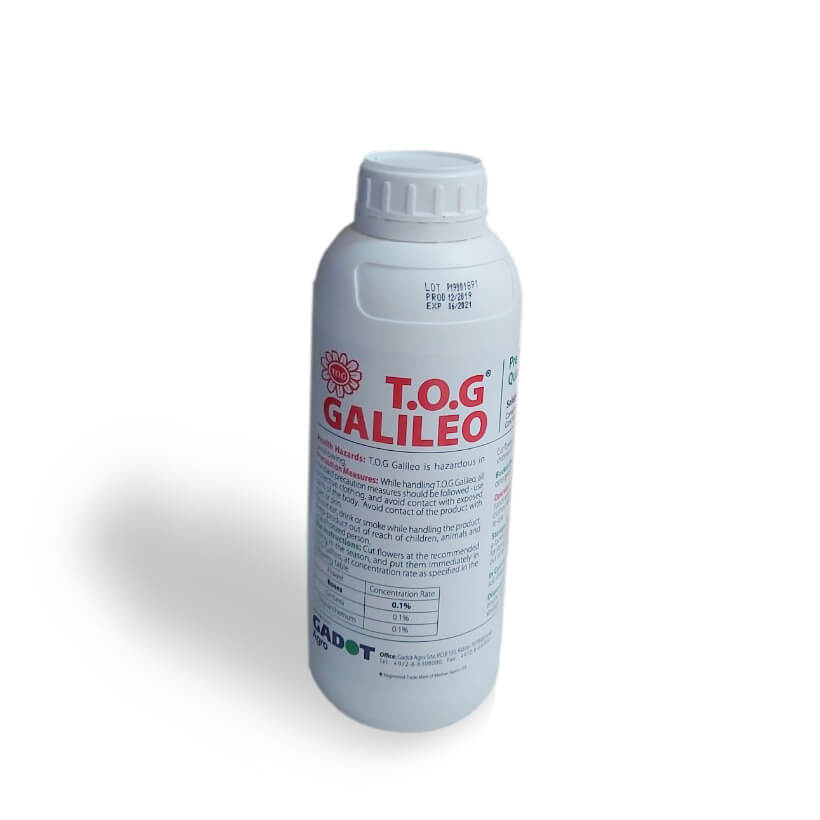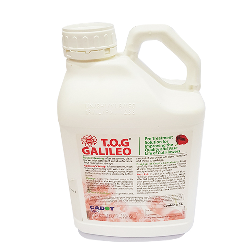 • Chế phẩm TOG Galileo là Dạng dung dịch, có màu vàng nhạt với thành phần an toàn 100% và được gọi là “chế phẩm” đặc biệt dành cho hoa cắt cành sau thu hoạch, không thuộc phân bón hay hóa chất