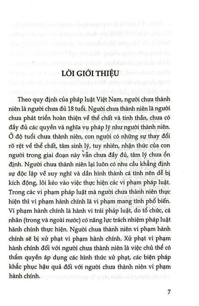 Cuốn sách phân tích cơ sở lý luận và pháp lý; đánh giá thực trạng pháp luật, thực trạng xử phạt vi phạm hành chính đối với người chưa thành niên, từ đó đề xuất các giải pháp để hoàn thiện pháp luật và nâng cao hiệu quả xử phạt vi phạm hành chính đối với người chưa thành niên.