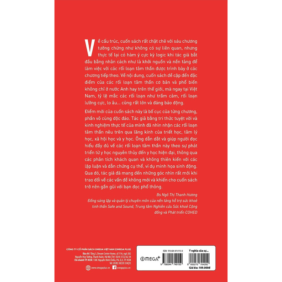 Xã hội phát triển càng nhanh thì sức khỏe tâm thần của con người càng cần nhận được nhiều sự quan tâm và suy ngẫm một cách đúng đắn - khoa học. Với mục tiêu xuyên suốt là thông qua các chứng rối loạn để khám phá bản chất và tình trạng tinh thần của mỗi người, “Ý nghĩa của sự điên loạn” này là một cẩm nang NHẬN DIỆN và XỬ LÝ nỗi đau tinh thần có thể đồng hành cùng bạn trên hành trình khám phá và tự chữa lành trong mình.