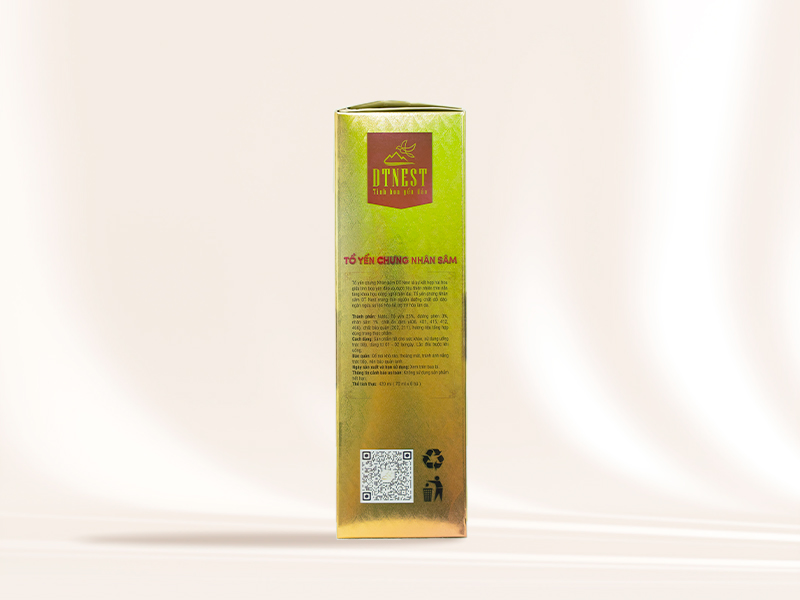 Mua tại TiktokTHÔNG TIN SẢN PHẨM Tổ yến chưng nhân sâm DT NEST Khánh Hòa kết hợp 25% Yến nguyên chất làm từ Sợi Yến Thật 100% Nhân sâm được xem là sản phẩm bồi bổ sức khỏe nhanh chóng, kết hợp với tổ yến DTNEST Khánh Hòa thì chẳng khác nào là sự kết hợp hoàn hảo giữa sâm và yến Mùi nhân sâm thơm lừng đặc trưng, sợi yến bổ dưỡng hoà quyện trong nước nhân sâm đã tiết ra, làm cho người dùng cảm giác sảng khoái và tỉnh táo hơn khi sử dụng THÀNH PHẦN: 25% tổ yến, đường phèn, nhân sâm, nước tinh khiết - Tổ yến: Bổ huyết, đẹp da, chống lão hóa
