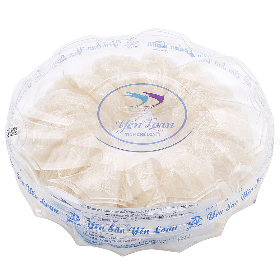 • Thành viên BCH Hiệp hội yến sào Việt Nam. Mô tả sản phẩm: Yến sào Yến Loan không tẩm đường, không pha trộn tạp chất, không sử dụng bất cứ hóa chất tẩy trắng hay tạo mùi trong quá trình làm sạch. Nguyên liệu là những tổ yến tinh chế gồm những tổ yến, nhiều lông. Tổ yến sau khi khai thác được người thợ Yến Loan rửa sạch với nước đã xử lý khử trùng qua tia cực tím, loại bỏ lông yến và tạp chất bằng phương pháp nhặt khô thủ công, đảm bảo giữ được tối đa các khoáng chất có trong tổ yến. Thành phẩm là những tổ yến to, sợi yến to và dài được nhiều khách hàng tin tưởng làm quà biếu gia đình, người thân. Công dụng: